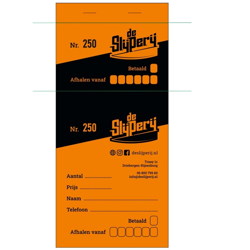 300 Afgiftebonnen naar eigen ontwerp gedrukt op wit papier of op gekleurd papier
