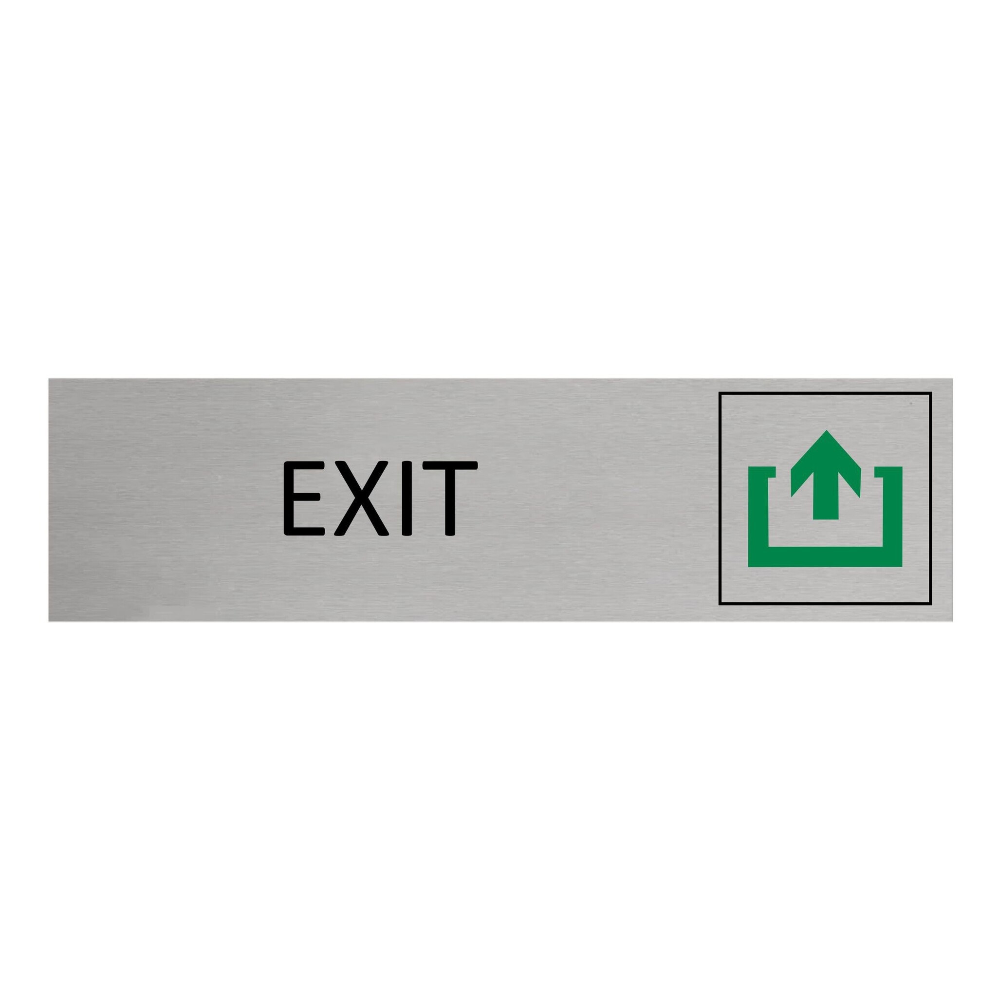 Deurbordje met de tekst 'Exit', gemaakt van zilverkleurig aluminium, Het bordje heeft afmetingen van 165 x 45 mm. Voorzien van dubbelzijdige tape voor makkelijke bevestiging. Geschikt voor binnen en buiten. Per 1 stuk.