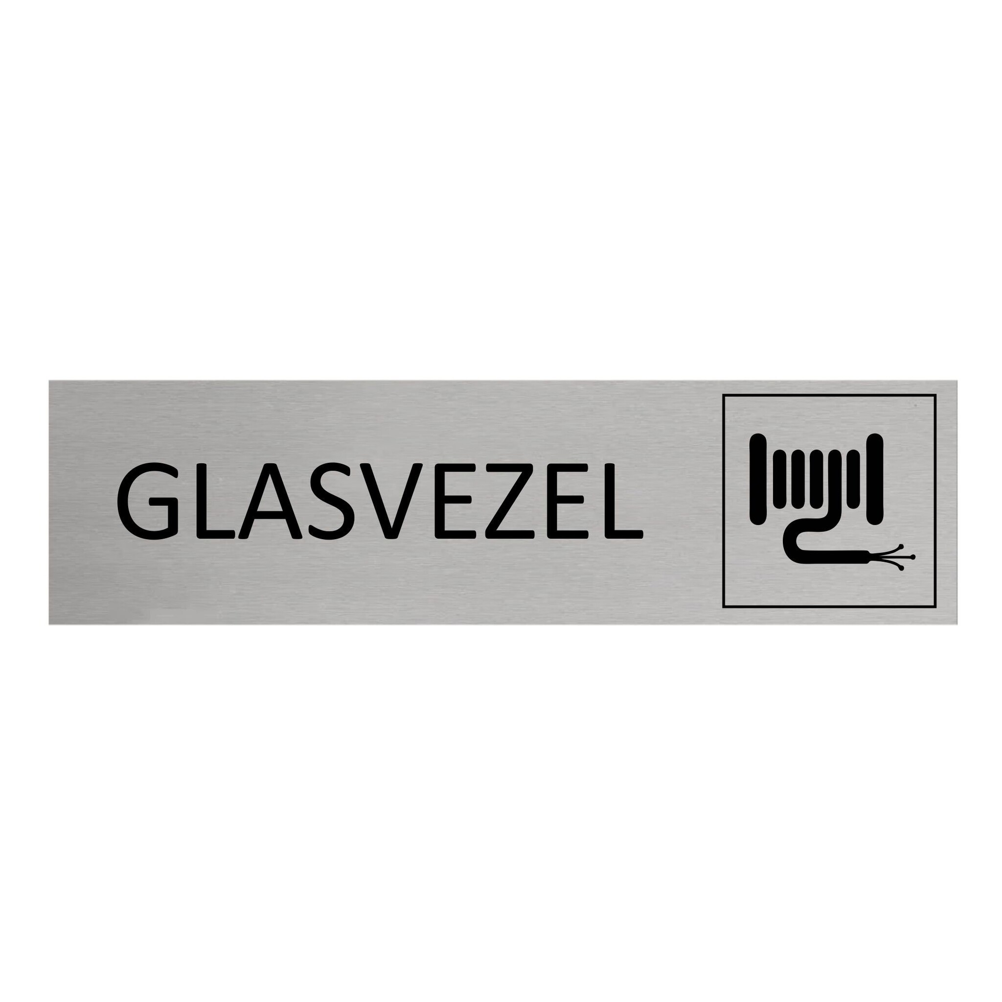 Zilverkleurig deurbordje met de tekst glasvezel. Het deurbordje heeft afmetingen van 165 x 45 mm en een dikte van 0,5 mm. Aan de achterzijde zit 3M-tape, voor snelle bevestiging. Geschikt voor binnen en buiten. Per 1 stuk.