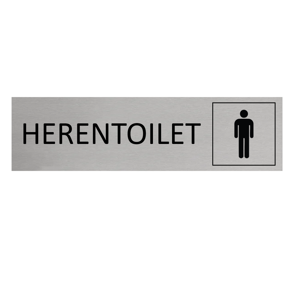 Deurbordje met de tekst Herentoilet, gemaakt van zilverkleurig aluminium. Het bordje heeft afmetingen van 165 x 45 mm. Voorzien van dubbelzijdige tape voor makkelijke bevestiging. Geschikt voor binnen en buiten. Per 1 stuk.