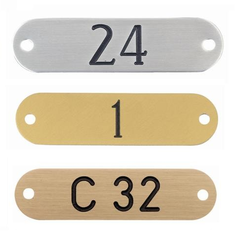 Wij leveren deze bordjes met 2 (verzonken) boorgaten of uitgevoerd met dubbelzijdig tape. Deze bordjes zijn per stuk te bestellen en worden voorzien van 2 gaatjes of dubbelzijdig tape, een symbool gravure, tekstgravure, een nummering of een combinatie van beiden.