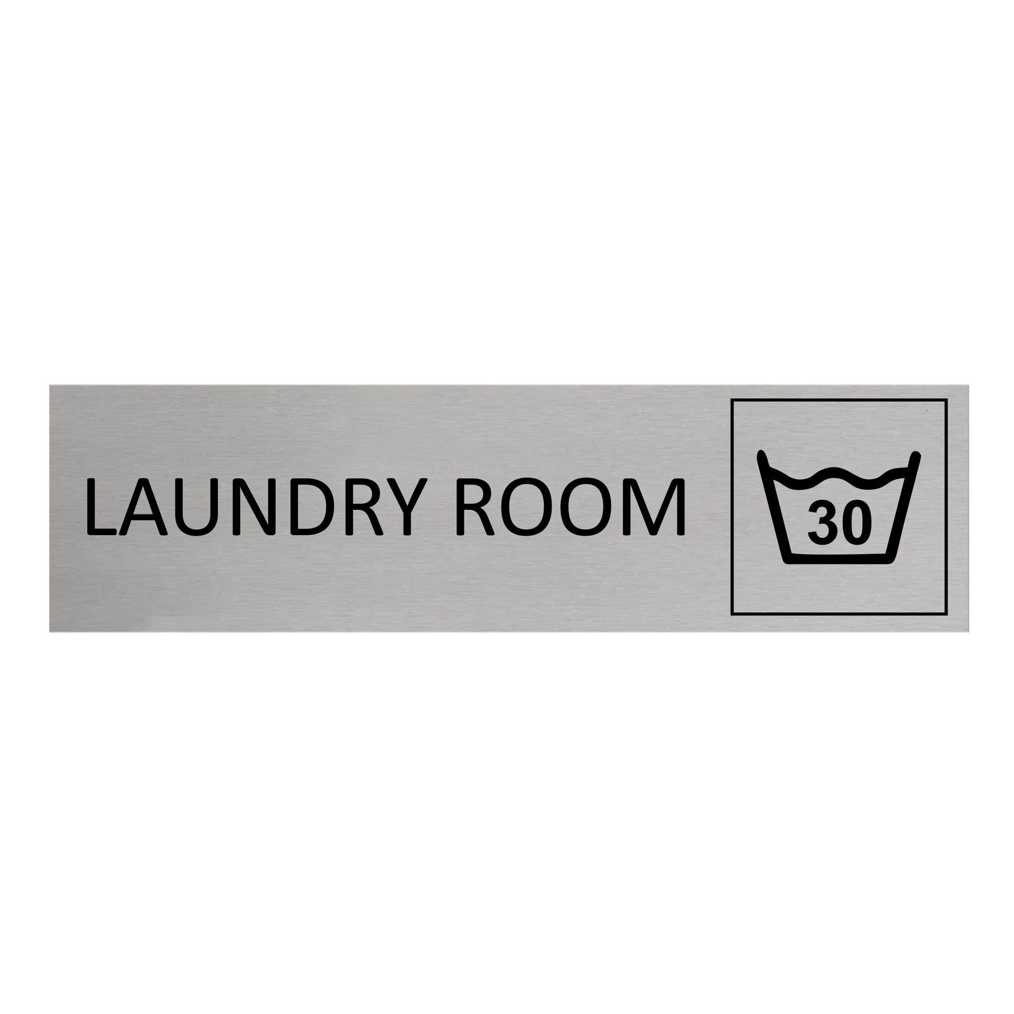 Deurbordje met de tekst 'Laundry room', gemaakt van zilverkleurig aluminium, Het bordje heeft afmetingen van 165 x 45 mm. Voorzien van dubbelzijdige tape voor makkelijke bevestiging. Geschikt voor binnen en buiten. Per 1 stuk.