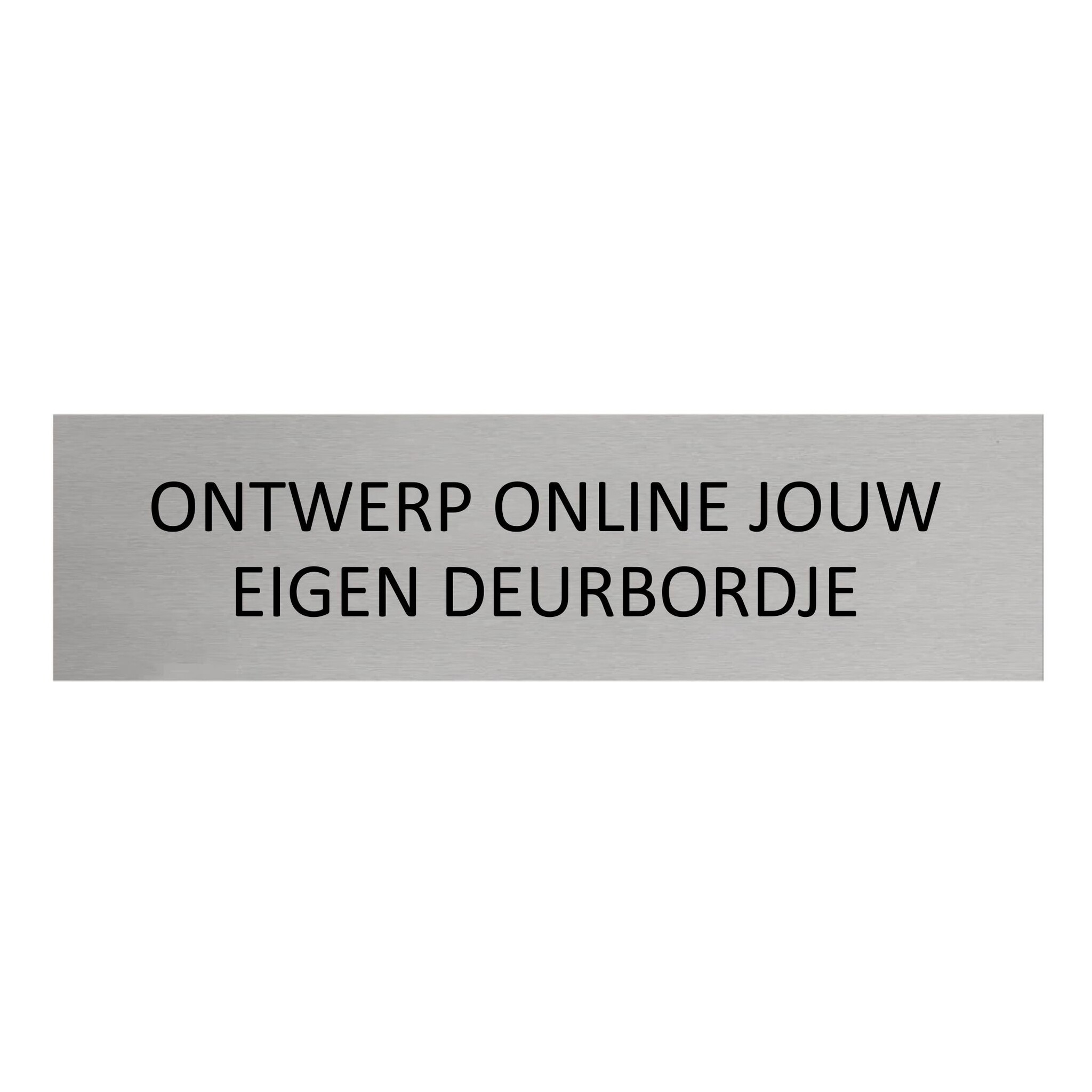 Voorzie dit zilverkleurige deurbordje van jouw eigen ontwerp. Handig voor kantoren, magazijnen of in huis. Het bordje heeft afmetingen van 165 x 45 mm en een dikte van 0,5 mm. De achterzijde is voorzien van dubbelzijdige tape en daarom makkelijk te bevestigen. Geschikt voor binnen en buiten.