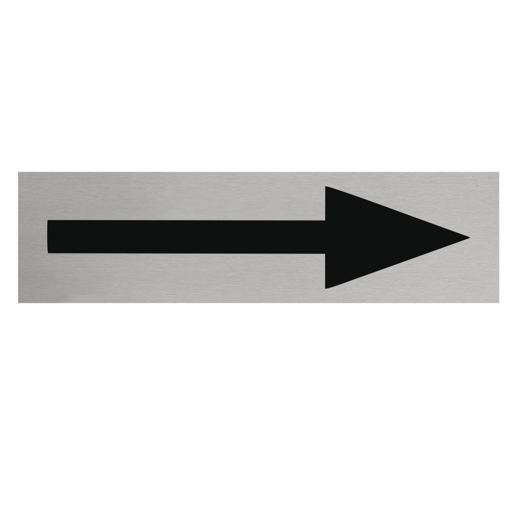 Deurbordje met een 'Pijl', gemaakt van zilverkleurig aluminium, Het bordje heeft afmetingen van 165 x 45 mm. Voorzien van dubbelzijdige tape voor makkelijke bevestiging. Geschikt voor binnen en buiten. Per 1 stuk.