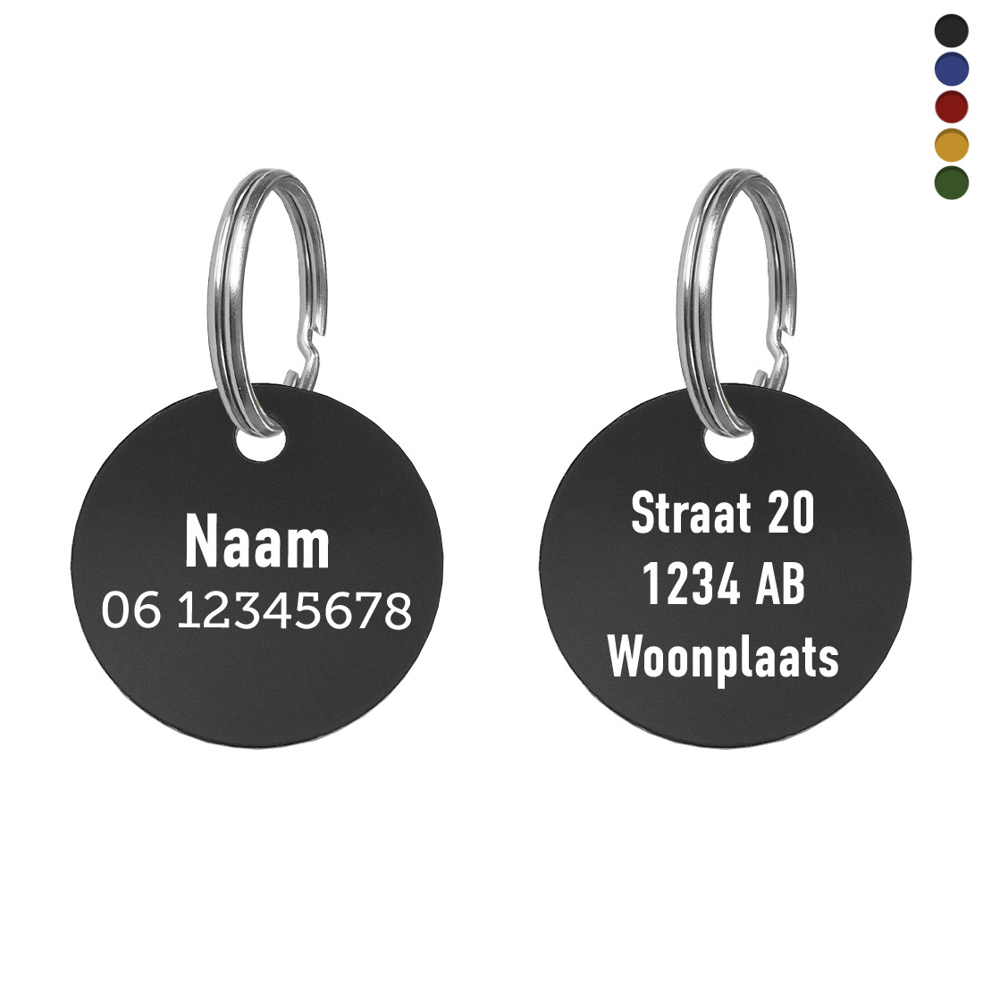 Aluminium hondenpenning Ø30mm met naam, telefoonnummer en tekst tweezijdige gravering - per stuk