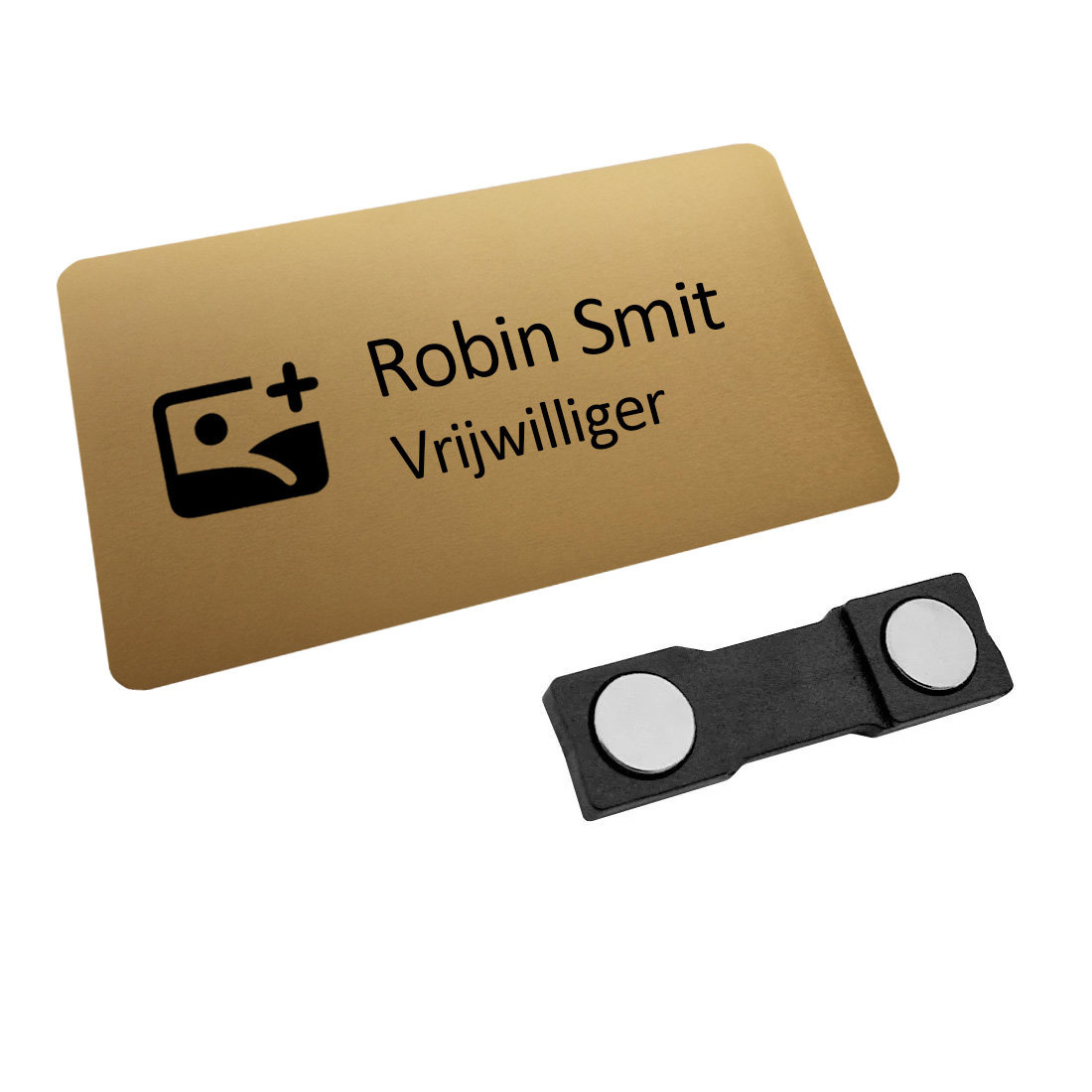 Het is mogelijk om de naambadge te personaliseren met een eigen ontwerp in zwart. Plaats er bijvoorbeeld een (bedrijfs)logo, illustratie, naam of functietitel op. Stuur je gewenste ontwerp, samen met je ordernummer, naar [email protected]. Je ontvangt altijd eerst een digitaal voorbeeld (artwork) ter goedkeuring. Bestel je meerdere naambadges met naam? Lever de namen dan onder elkaar aan in een Excel-bestand.