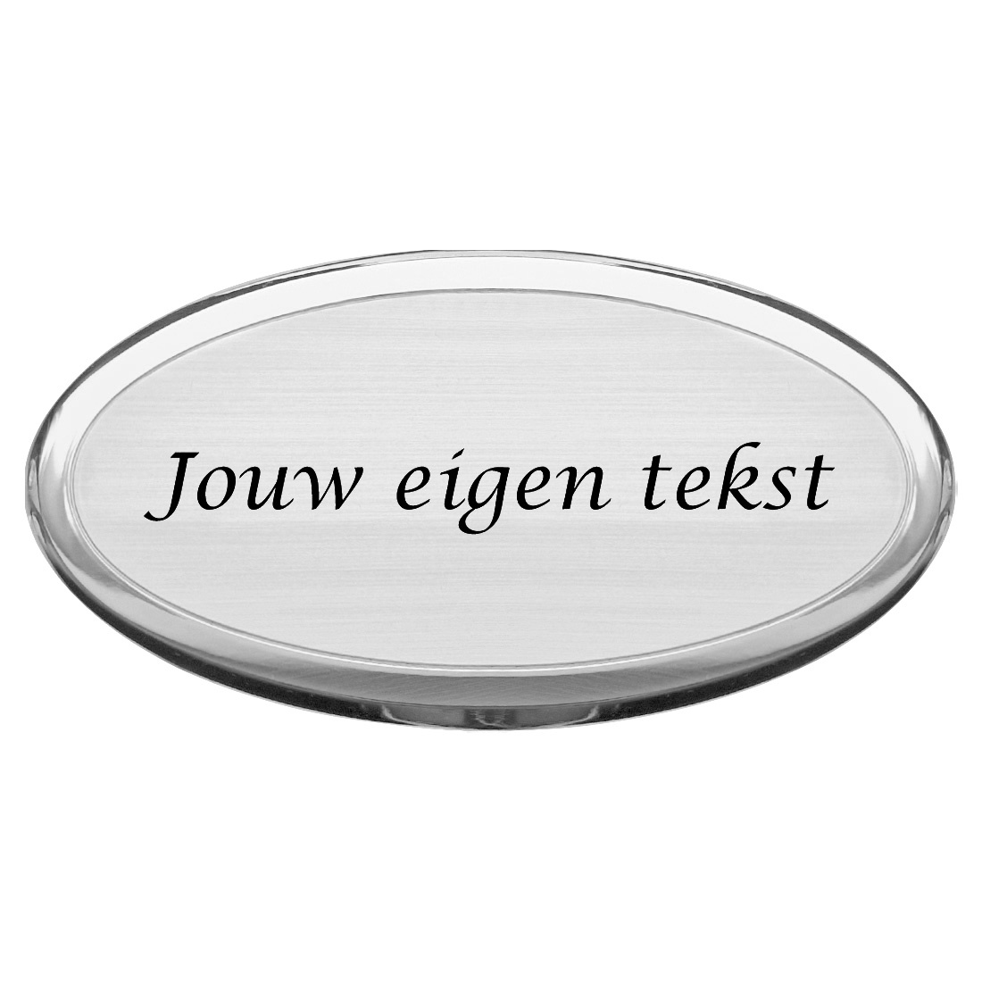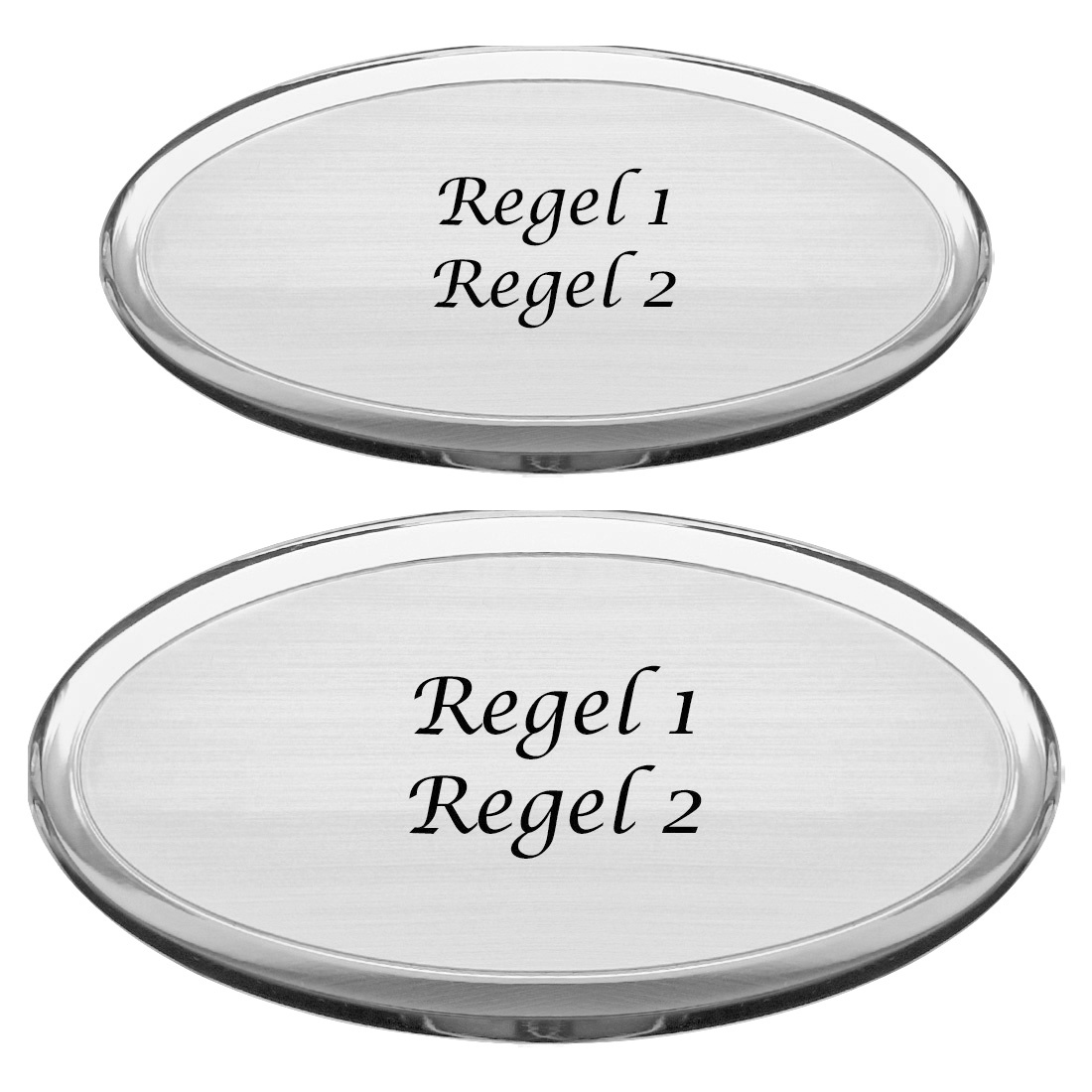 De aluminium Ariana naambordjes zijn verkrijgbaar in de maten 80 x 45 mm en 100 x 50 mm en hebben een dikte van 2 mm. Ze zijn gemaakt van zilverkleurig aluminium en stralen luxe uit. Daarnaast hebben ze een duidelijke en sierlijke rand. Voorzie de naambordjes van één of twee regels eigen tekst. De tekst wordt in zwart aangebracht middels lasergravering. Vul in de daarvoor bestemde velden de gewenste tekst in en kies het lettertype waarin je de tekst gegraveerd wilt hebben.