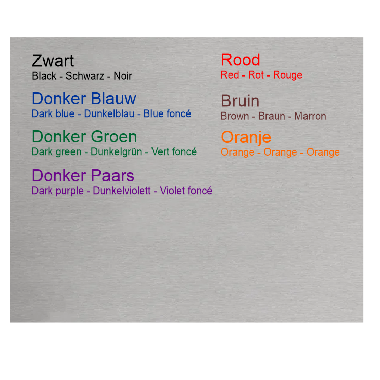 De nummerplaatjes bedrukken wij met elke willekeurige nummering. Je kunt een doorlopende nummering opgeven (bijv. 0001 t/m 9999) maar ook losse nummers (bijv. 10, 80 en 2) kunnen wij bedrukken. Er hoeft dus geen logica te zitten in de nummers en ook letters zijn geen probleem.