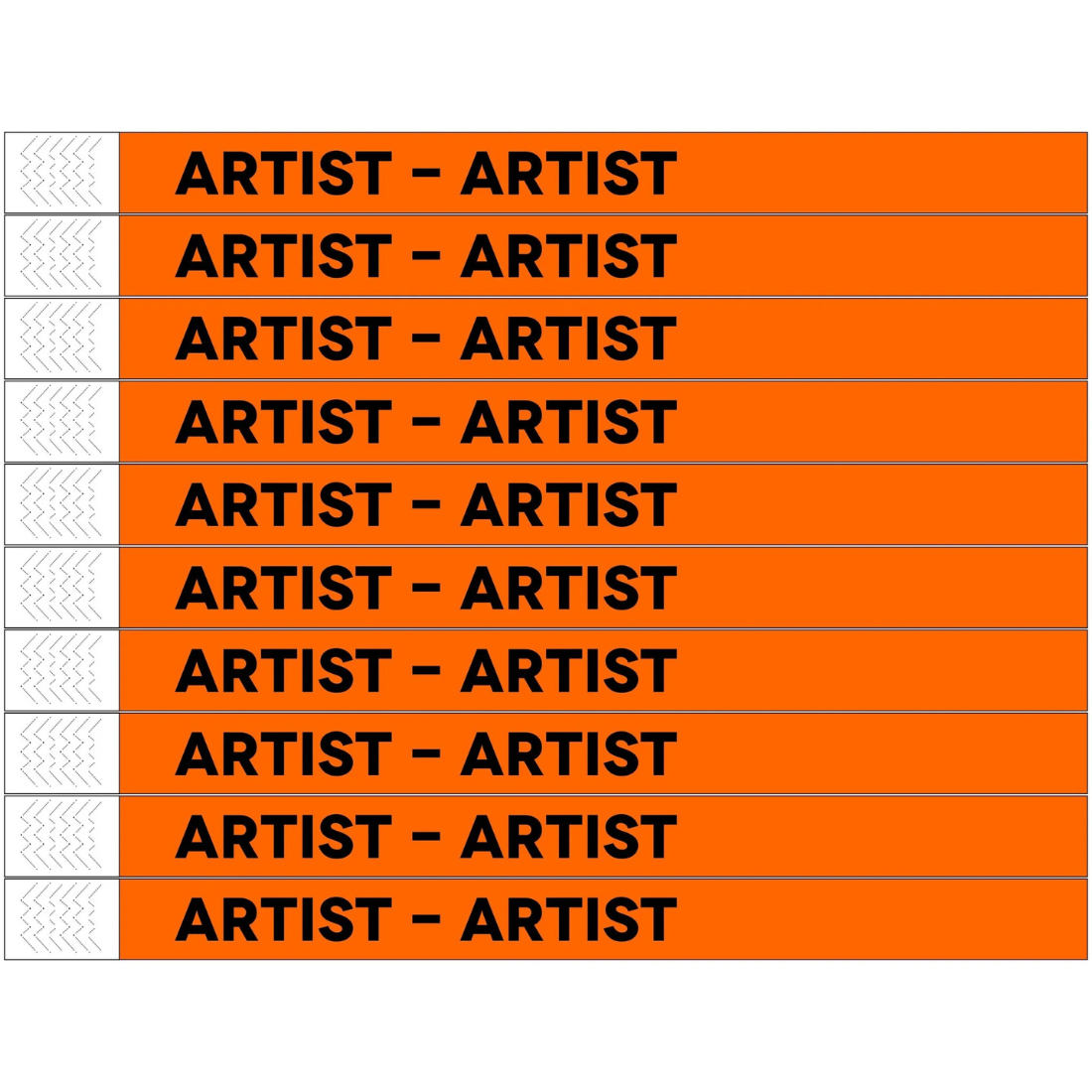 De Tyrex polsbandjes zijn zwart bedrukt met de tekst ‘Artist' en hebben afmetingen van 248 x 19 mm. Ze zijn voorzien van een nummering en een sterke plakstrook met veiligheidsbevestiging. Zowel kinderen als volwassenen kunnen deze polsbandjes dragen. De polsbandjes worden geleverd op vellen, waarbij de bandjes gemakkelijk van elkaar los te scheuren zijn. Je ontvangt 10 vellen met op elk vel 10 bandjes. In totaal ontvang je 100 polsbandjes. Daarnaast is het mogelijk om de bandjes extra te beschrijven met een balpen of een watervaste stift.