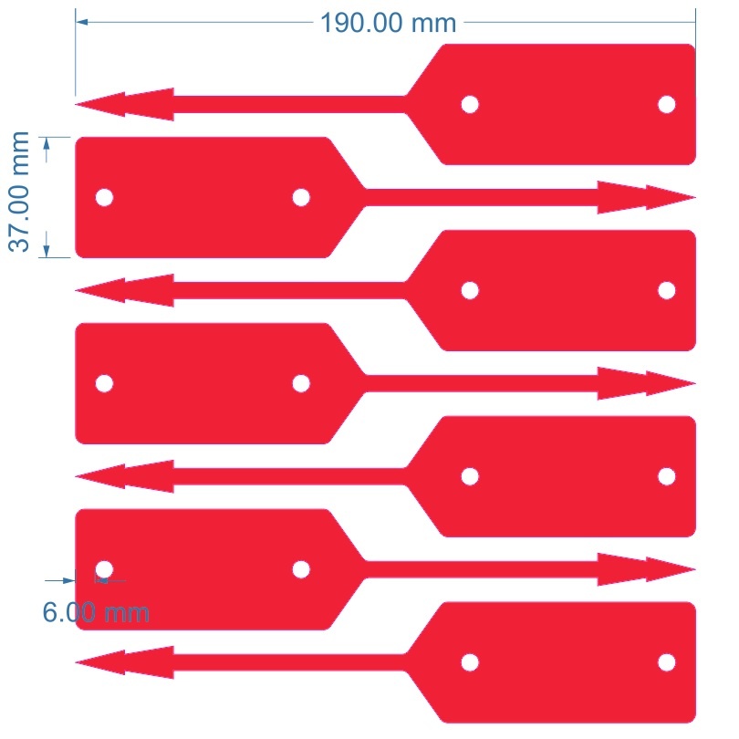 Deze autolabels hebben afmetingen van 190 x 37 mm en een dikte van 200 micron. De labels zijn gemaakt van HDPE, een extreem sterk materiaal dat uitstekend geschikt is voor binnen- en buitengebruik. De labels zijn te bestellen in meerdere kleuren, vanaf 10.000 stuks. Op een vel zitten 10 geperforeerde labels per blad. Het is mogelijk om de autolabels of werkplaatslabels, naast een bedrukking, te beschrijven met een pen of watervaste stift. Ze kunnen ook worden voorzien van stickers.