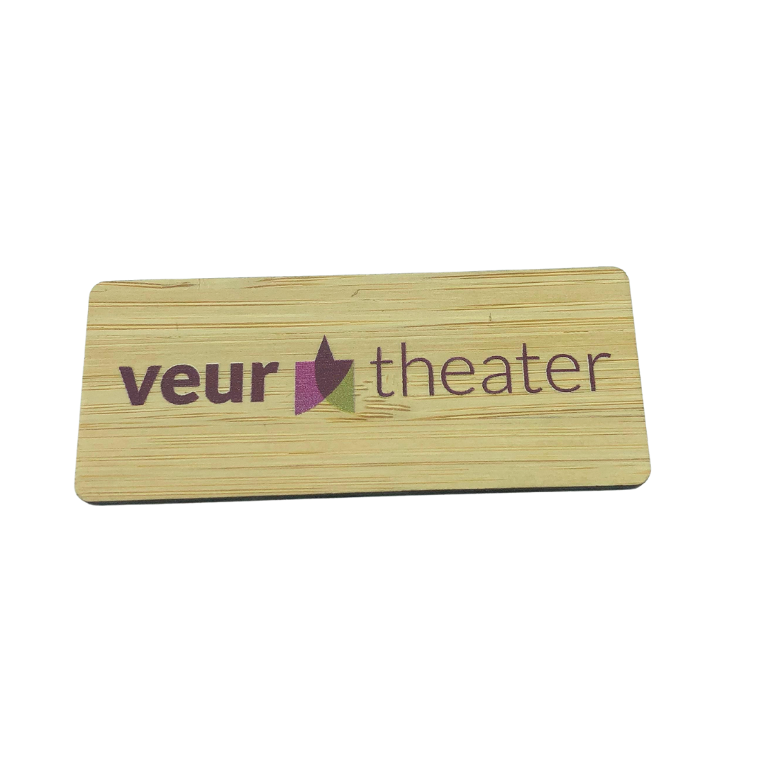 Bamboe naambadge 72x30mm met naam en logo - per stuk