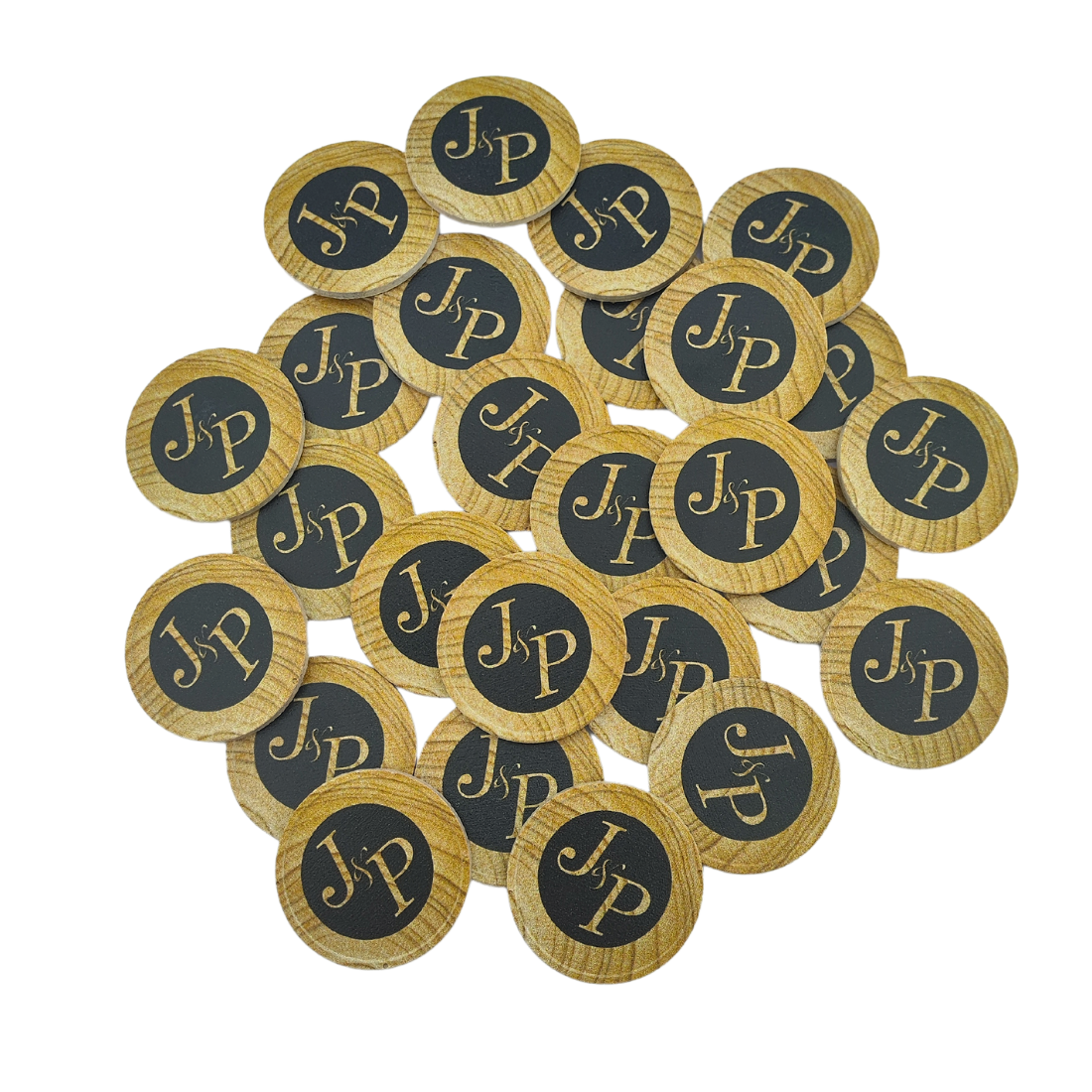 Houtmotief munten Ø35mm met jouw eigen ontwerp - per 100 stuks