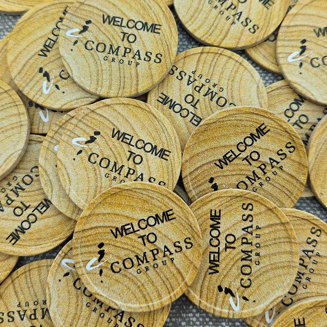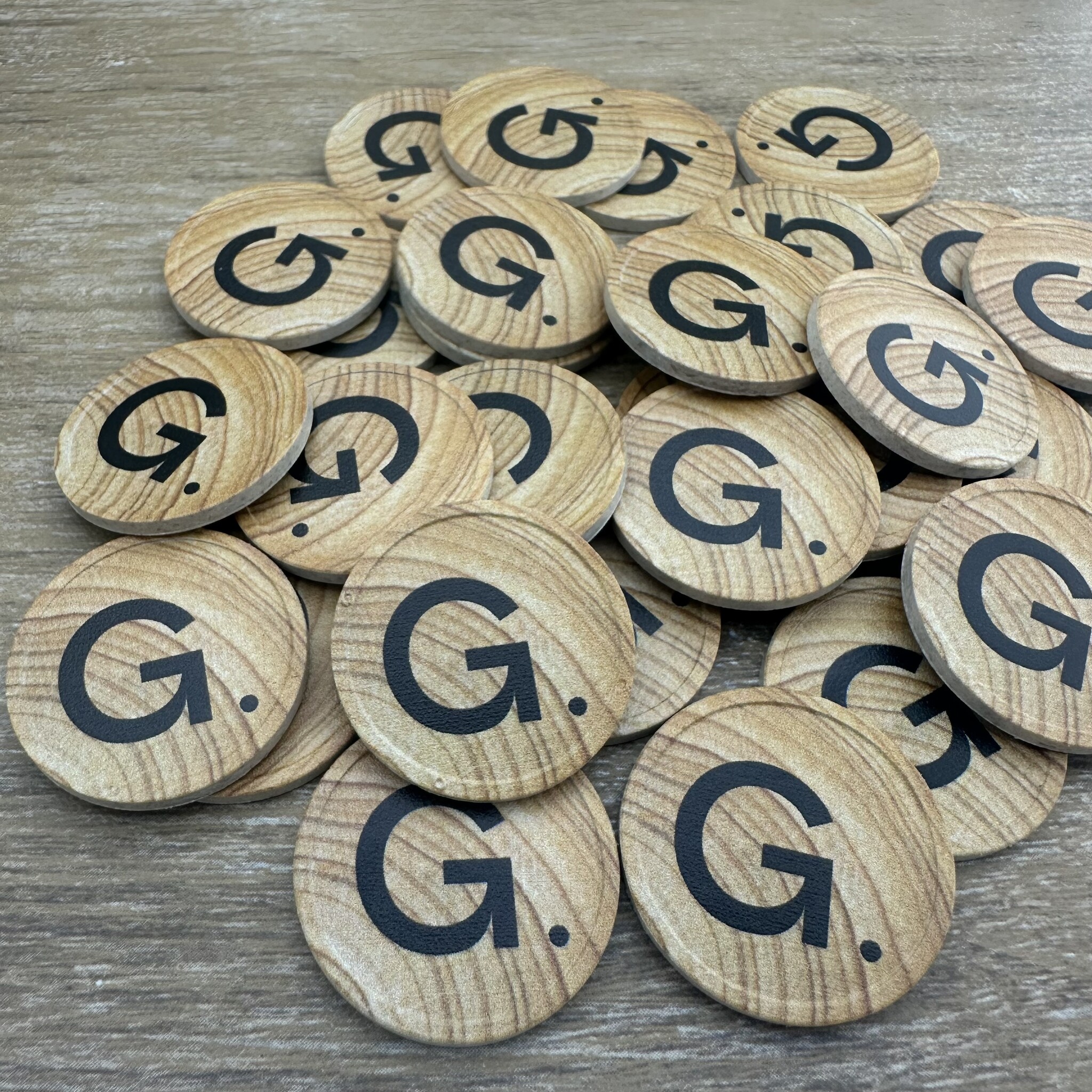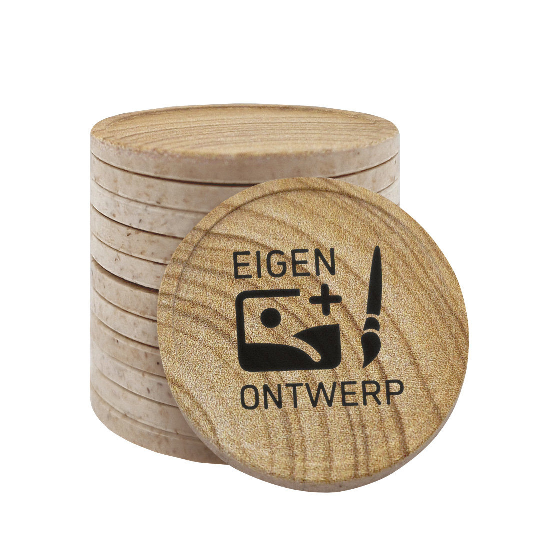 Houtmotief munten Ø29mm met jouw eigen ontwerp - per 100 stuks