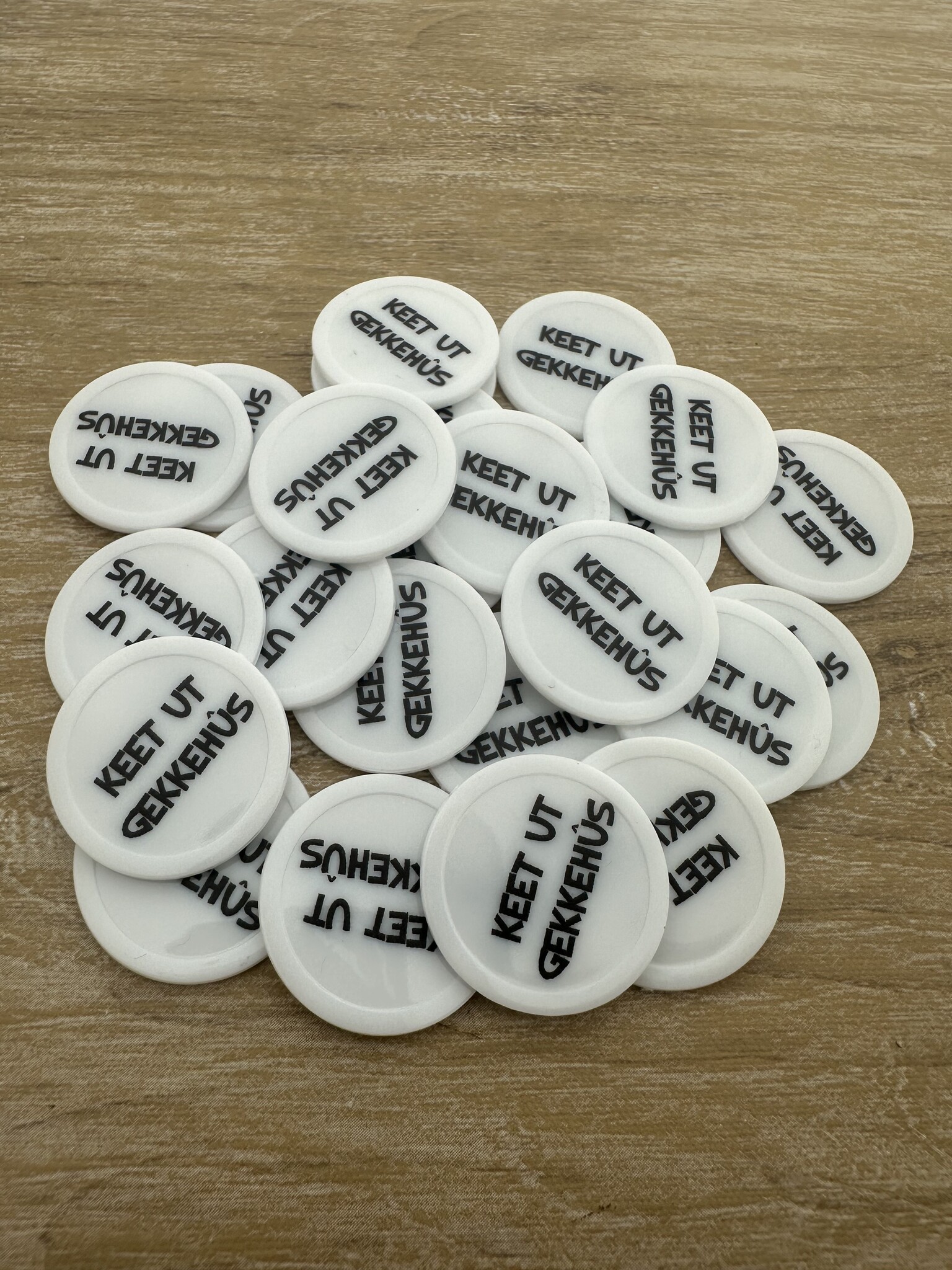 Plastic bedrukte munten met eigen ontwerp Ø28mm wit - per 100 stuks