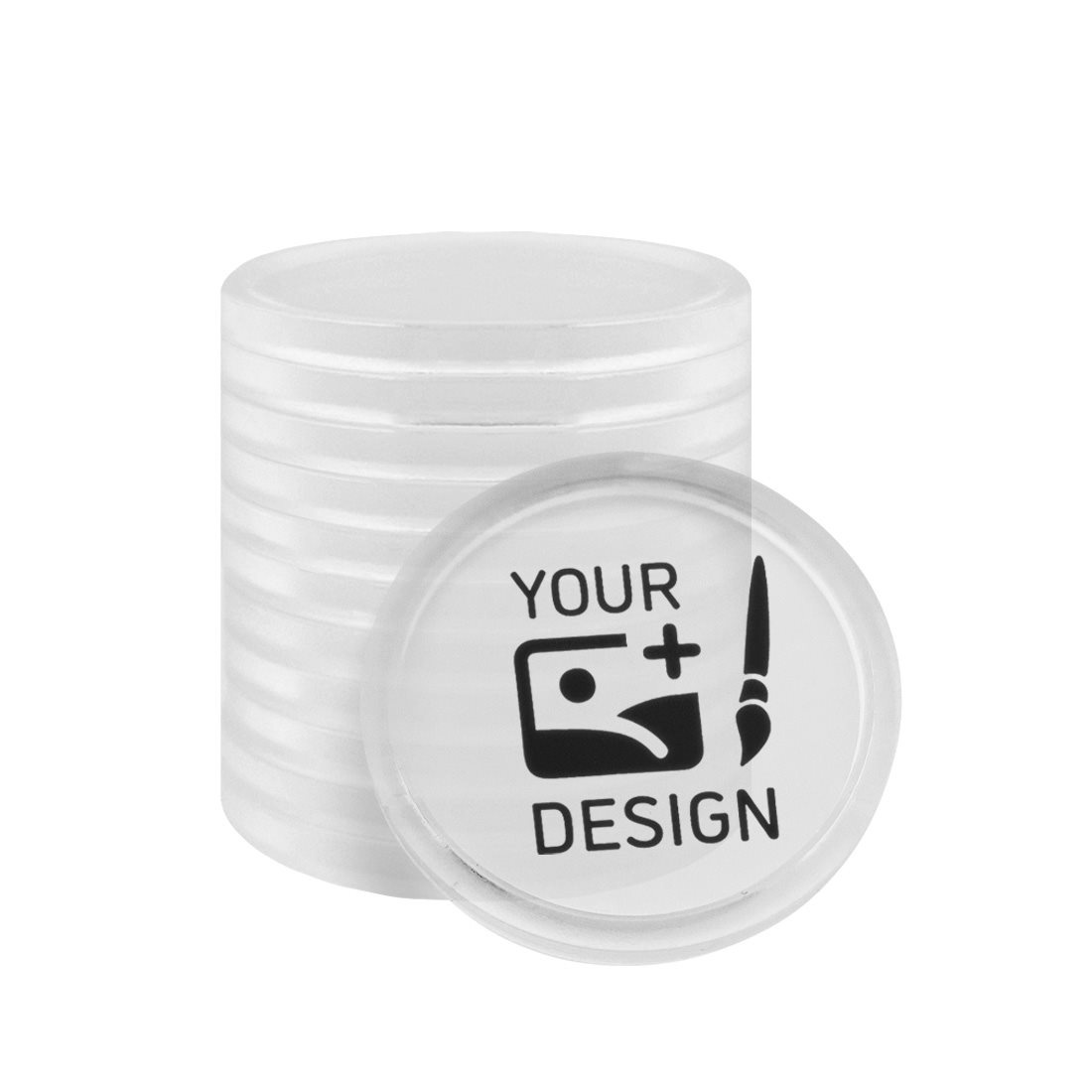 Transparante munten met jouw eigen bedrukking Ø25mm - per 100 stuks