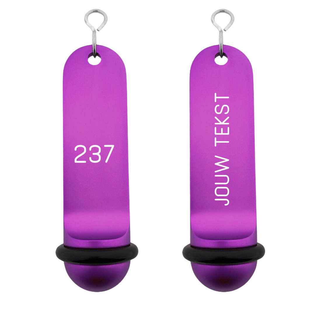 De paarse Big Classic wordt voorzien van zilveren gravering naar wens. Hierdoor kun je een persoonlijke tint toevoegen. Zo wordt een logo, nummer of tekst mooi gegraveerd op de sleutelhanger. Kies het aantal regels en lettertype voor het complete plaatje. De combinatie van zilver en paars zorgt voor een klassiek contrast.