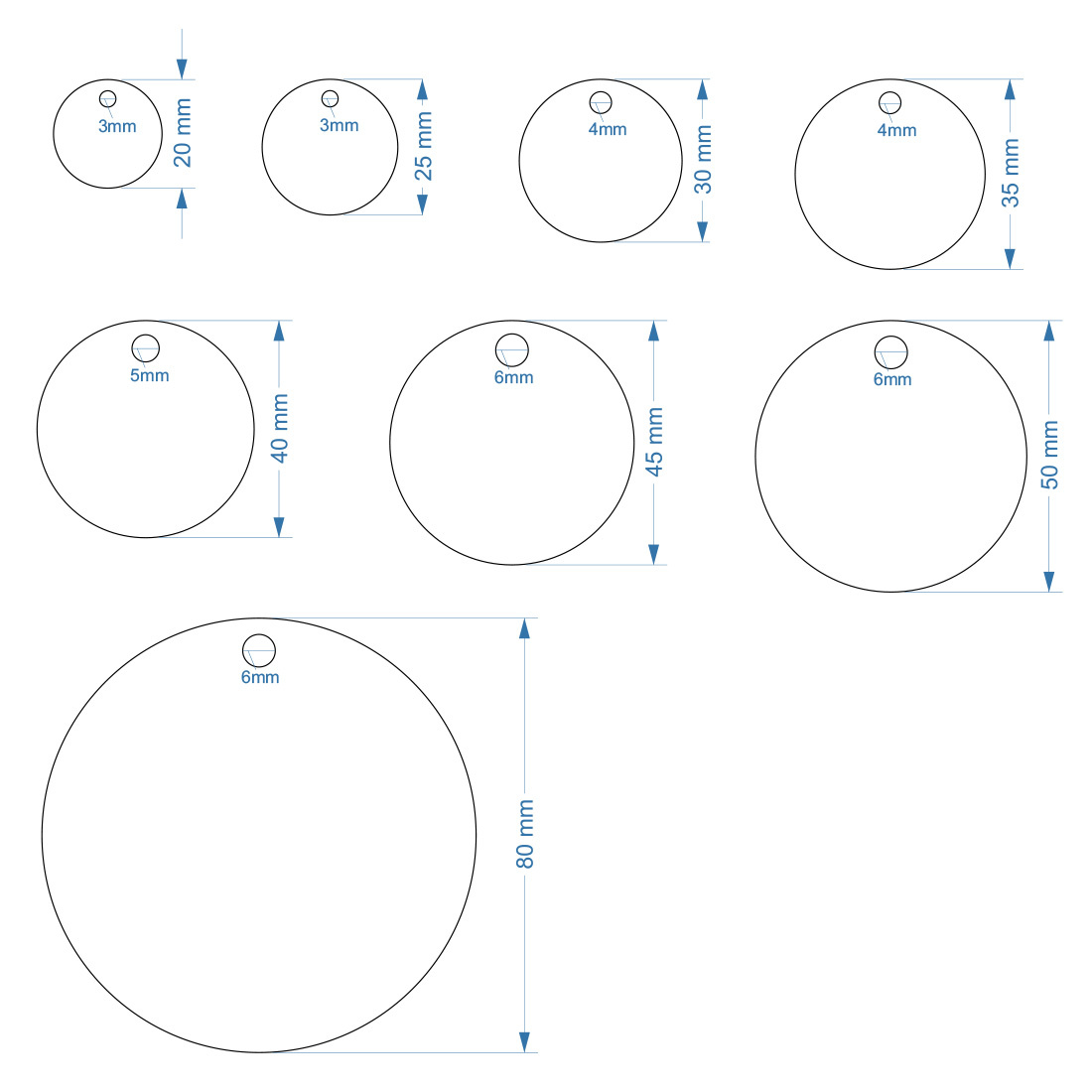 Nummerplaatjes zijn een handig hulpmiddel voor snelle registratie en identificatie. Ideaal voor bijvoorbeeld kluisjes, gereedschap, machines, stellingen en nog veel meer. De RVS nummerplaatjes zijn verkrijgbaar in verschillende maten en diktes. Gatgroottes: Ø20–25 mm = 3 mm, Ø30–35 mm = 4 mm, Ø40 mm = 5 mm, Ø45–80 mm = 6 mm.