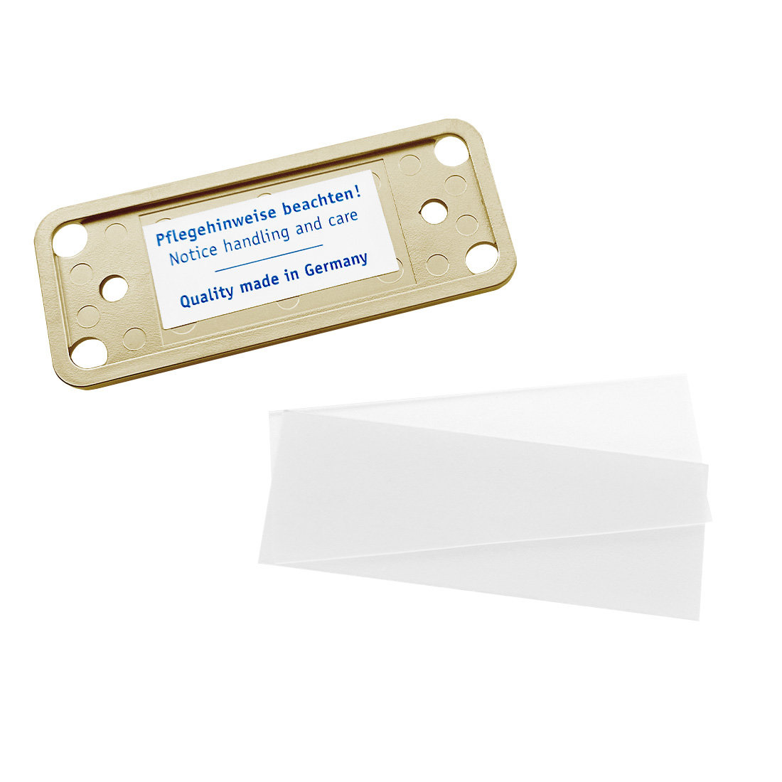 De Office naambadge is gemaakt van kwalitatief kunststof en verkrijgbaar in de maten 81 x 23 mm, 81 x 33 mm en 81 x 43 mm. De badge is voorzien van een wit papiertje dat eenvoudig beschreven kan worden met bijvoorbeeld een naam of functietitel. Aan de voorzijde bevindt zich een antireflecterend, transparant venster. Om het papiertje te vervangen, prik je door een van de openingen aan de achterzijde van de naambadge.