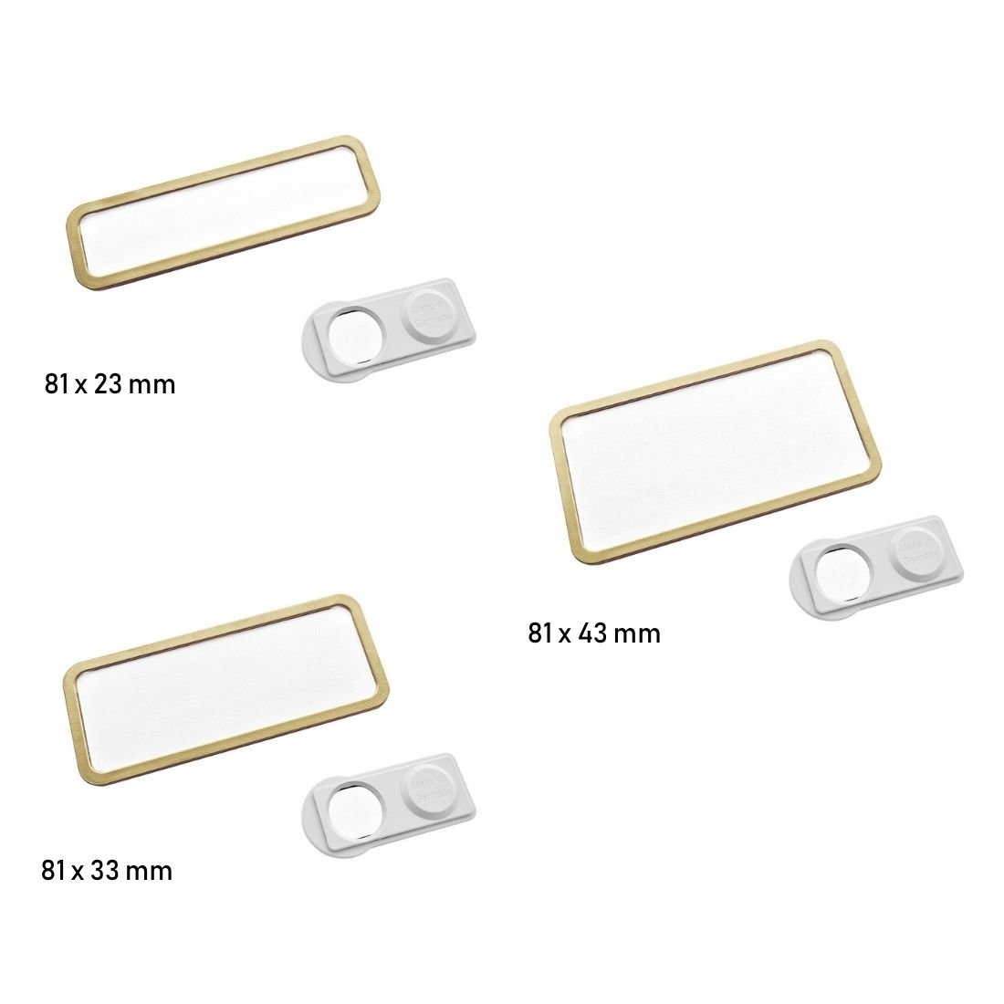- Naambadge 81 x 33 mm – papier afmetingen van 75 x 27 mm.