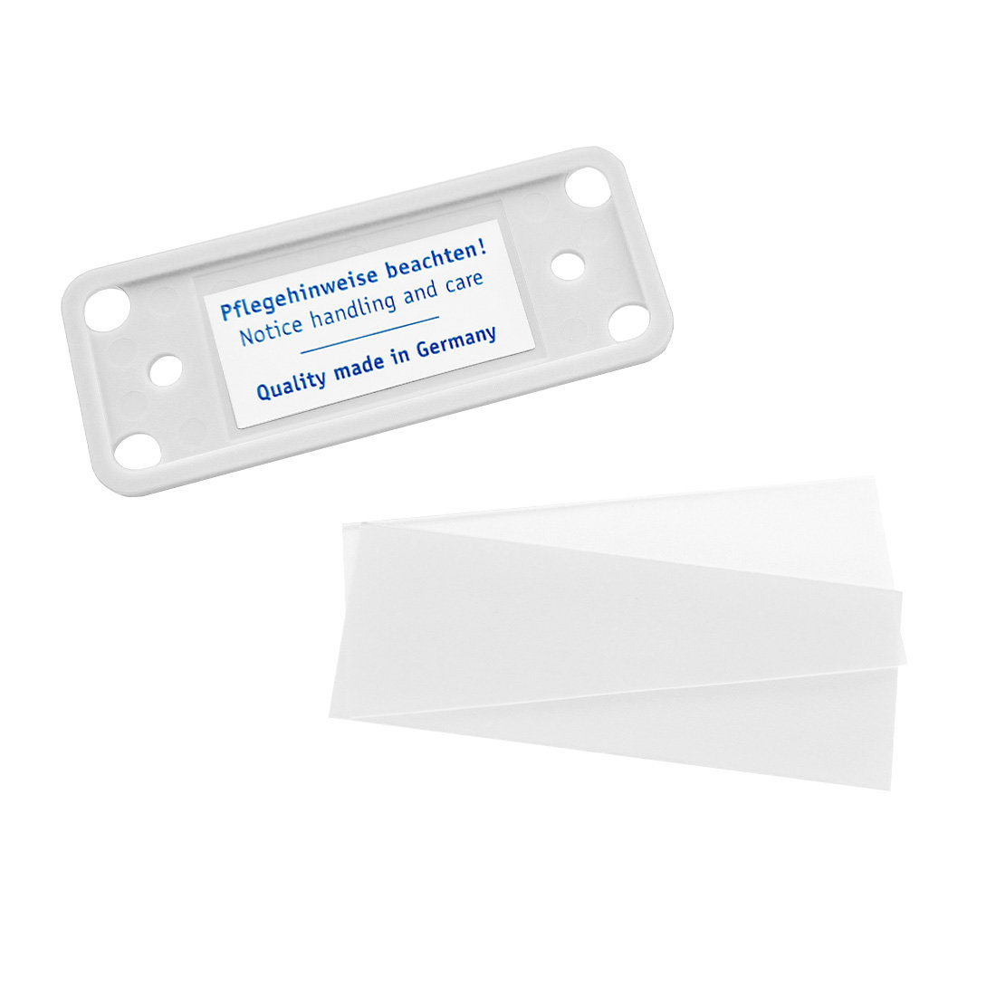 De Office naambadge is gemaakt van kwalitatief kunststof en verkrijgbaar in de maten 81 x 23 mm, 81 x 33 mm en 81 x 43 mm. De badge is voorzien van een wit papiertje dat eenvoudig beschreven kan worden met bijvoorbeeld een naam of functietitel. Aan de voorzijde bevindt zich een antireflecterend, transparant venster. Om het papiertje te vervangen, prik je door een van de openingen aan de achterzijde van de naambadge.