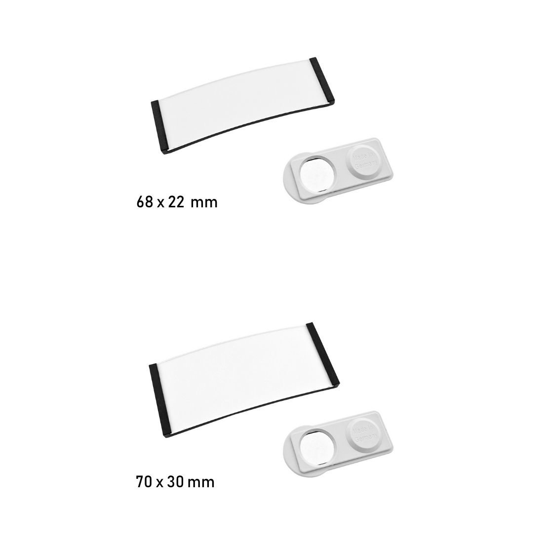 De zwarte Polar naambadge is gemaakt van kwalitatief kunststof en verkrijgbaar in de maten 68 x 22 mm (klein formaat) en 70 x 30 mm (standaardformaat). Aan de achterzijde zit een krachtige SMAG dubbelmagneet (2 magneten), die ervoor zorgt dat de badge stevig op zijn plaats blijft zitten zonder te verschuiven of los te raken. Dit maakt ze ideaal voor mensen die veel in beweging zijn. De naambadge is voorzien van een stevig, doorzichtig acetaatvenster met daarachter een wit papiertje. Dit venster en papiertje kun je gemakkelijk uit de badge schuiven om het papiertje te voorzien van een naam, functie of andere informatie.