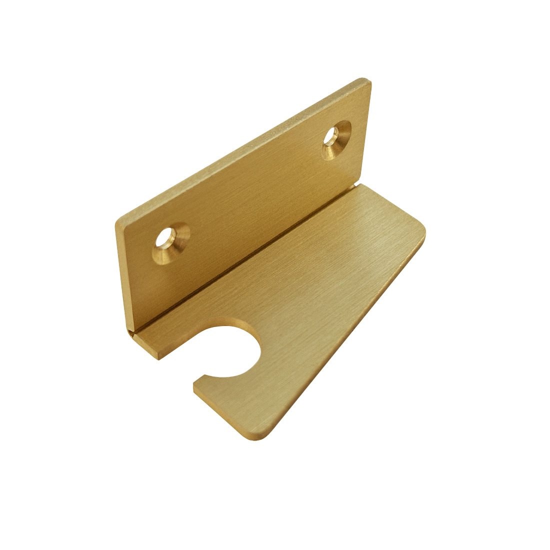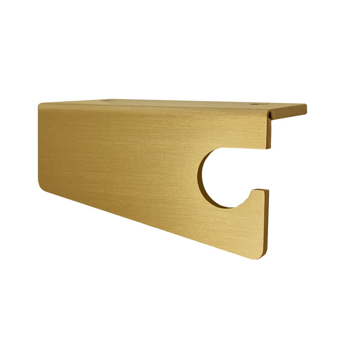 De sleutelhaak heeft afmetingen van 45 x 22 mm en een dikte van ongeveer 2 mm. Hij is gemaakt van gesatineerd messing met een goudkleurige afwerking. Dankzij de twee ophanggaten van circa Ø3 mm kan hij eenvoudig worden bevestigd onder een plank of in een vakkenkast. Let op: bijpassende schroeven worden niet meegeleverd.