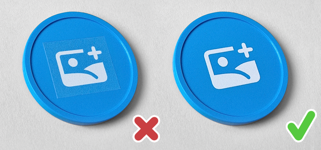 Rechthoekige of ronde achtergronden die dezelfde kleur hebben als de munt, kunnen problemen opleveren bij het bedrukken. Rechthoekige vormen in de achtergrond in dezelfde kleur als de munt worden door ons productieteam verwijderd. Bij ronde achtergronden nemen we contact op om te controleren of deze daadwerkelijk bij het ontwerp horen.