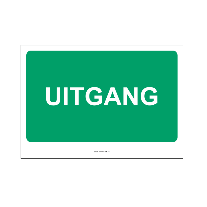 Bord om aan te geven dat een ruimte of deur de juiste uitgang is. Vooral met eenrichtingsverkeer of vaste looproute kan dit bord goed werken. Bord is 21x30 cm groot en kan met tape of boorgaten worden geleverd.