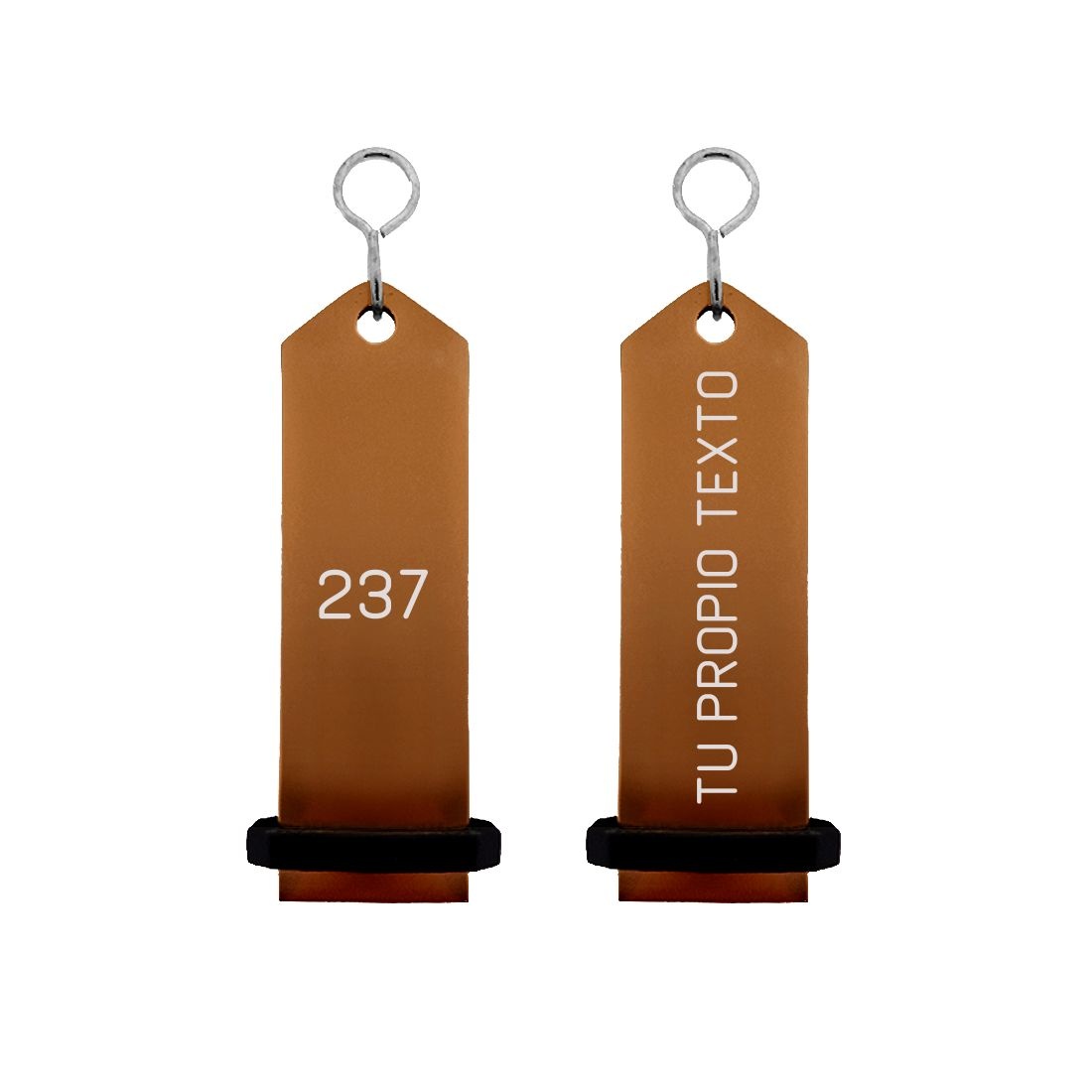 Bumerang aluminium hotel sleutelhanger in brons met witte gravering 30x100 mm