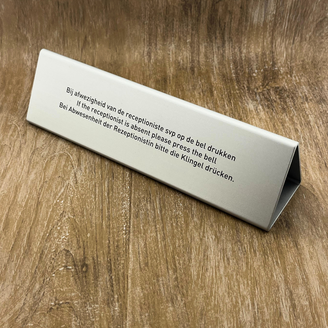 Bekijk ook onze andere bureau naambordjes met naamstrook of met papierinleg om zelf te beschrijven met een gewenste tekst.