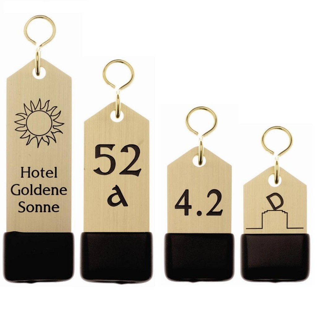 Cascade hotelsleutelhangers Messing 4mm dik Rechthoekig met stootdrop
