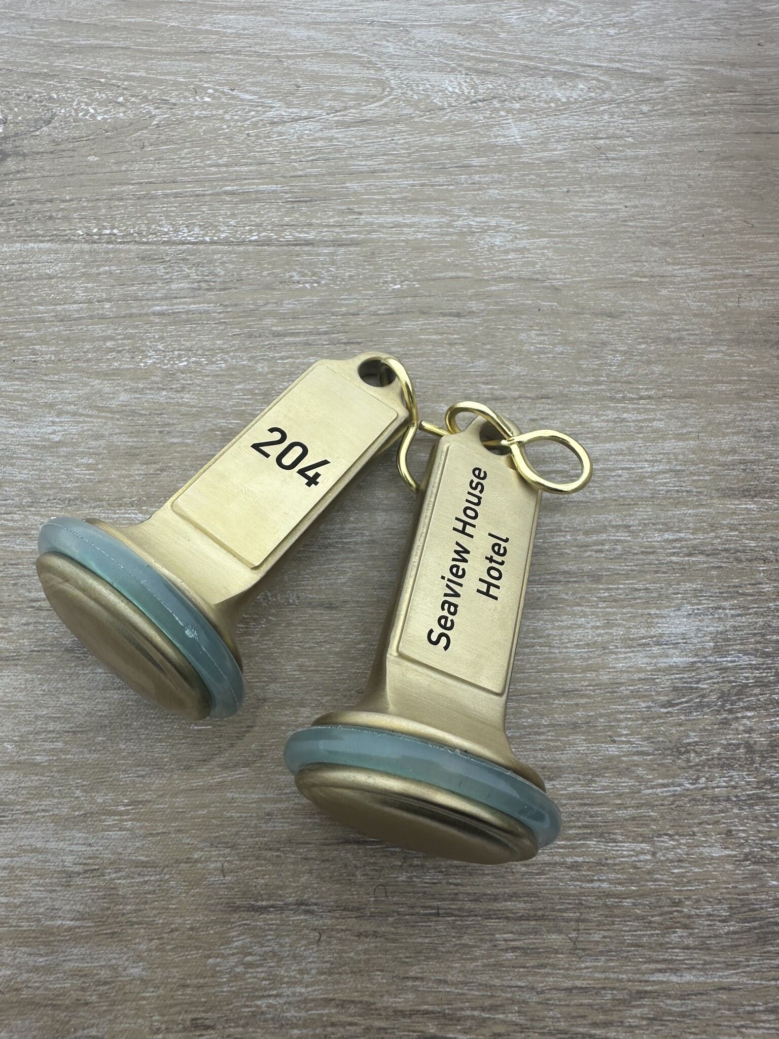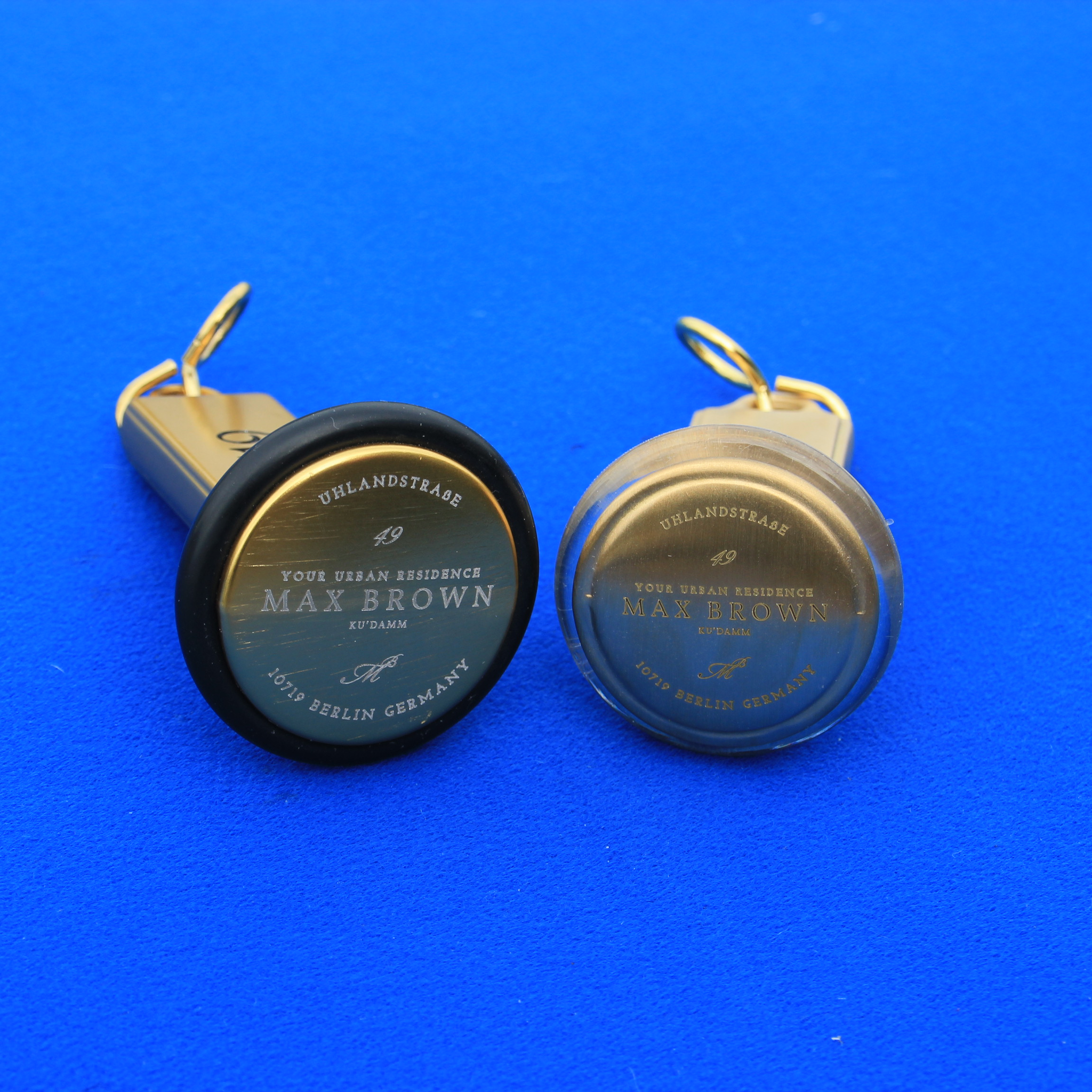 Desgewenst is de sleutelhangers te voorzien van naam, kamernummer en/of logo (meerprijs graveren)