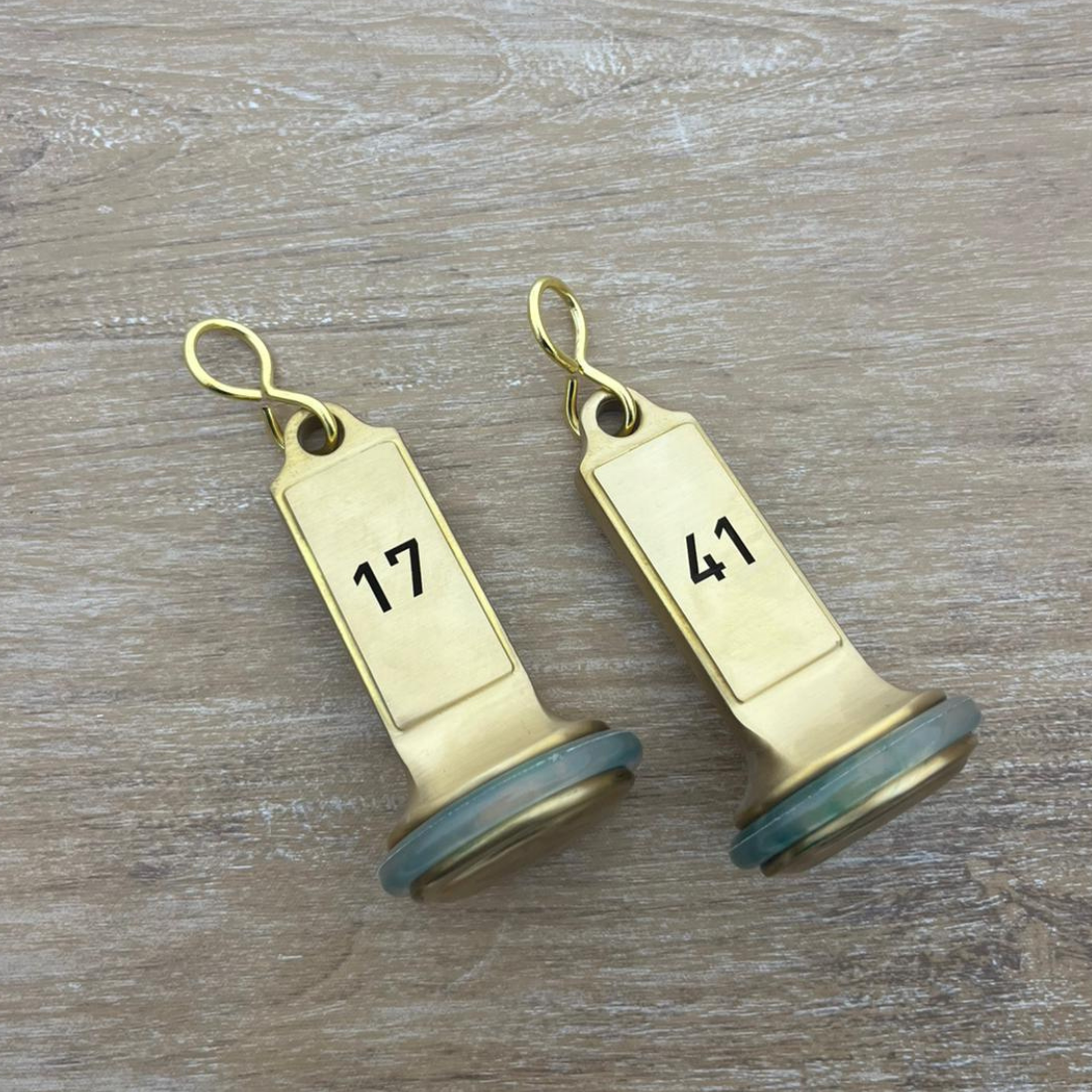 CASTEL massief Messing Hotelsleutelhanger incl. stootring en S-haak - in verschillende uitvoeringen leverbaar
