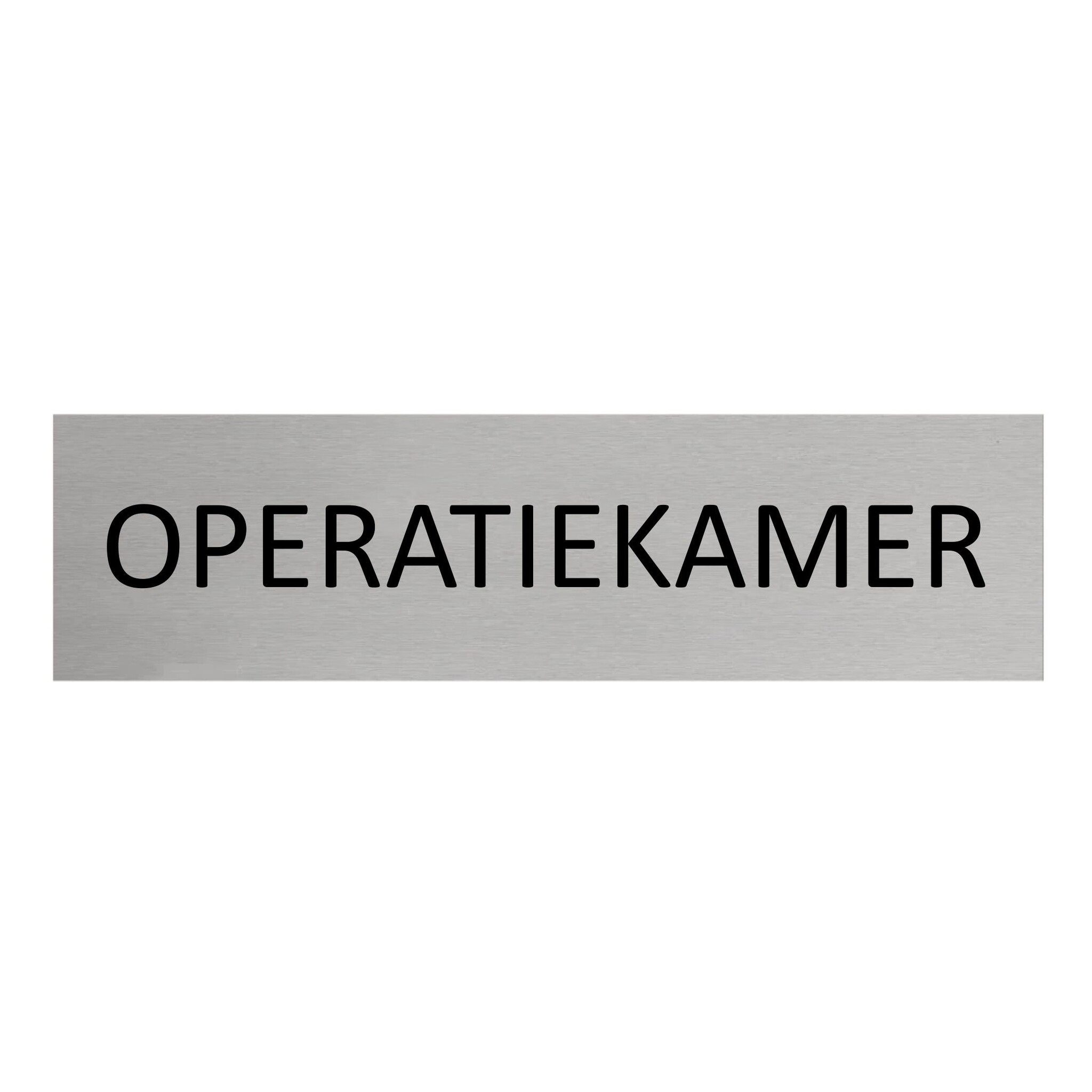 Deurbordje met de tekst 'Operatiekamer', gemaakt van zilverkleurig aluminium. Het bordje heeft afmetingen van 165 x 45 mm en een dikte van 0,5 mm. Aan de achterzijde zit 3M-tape, voor makkelijke bevestiging. Geschikt voor binnen en buiten. Per 1 stuk.
