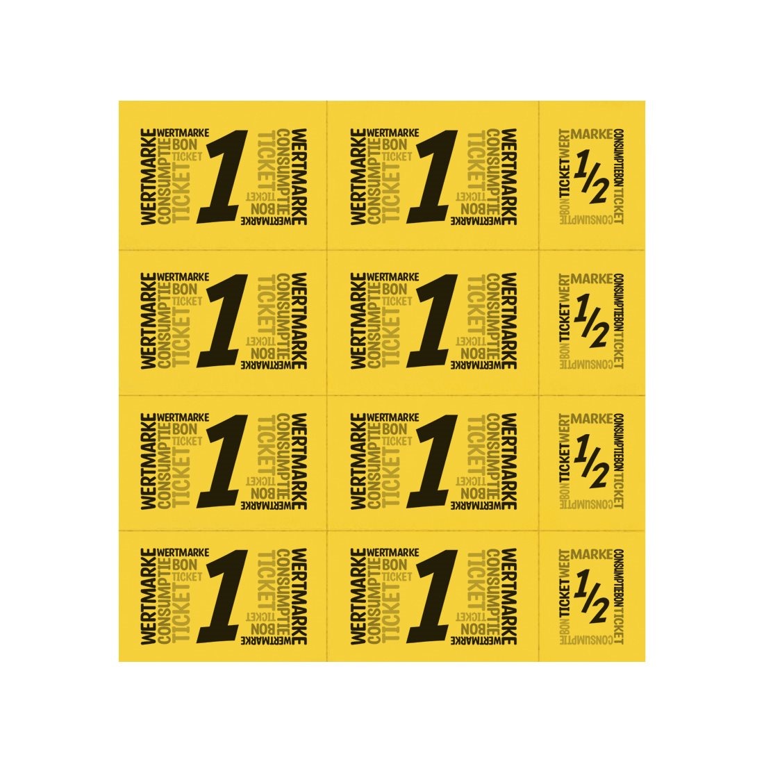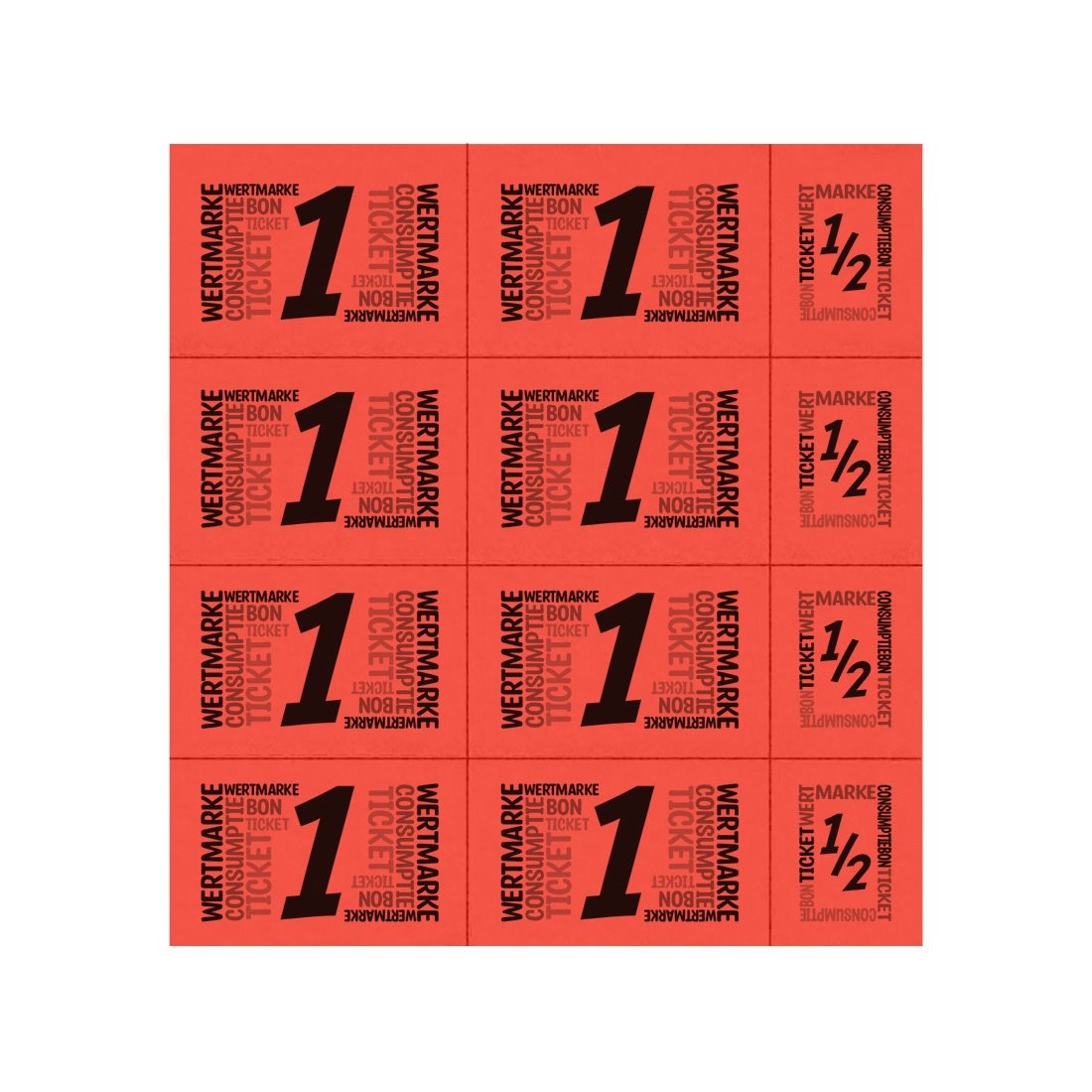 | Bedrukking: | Zwarte bedrukking '1 Consumptie' en '1/2 Consumptie' in 4 talen |