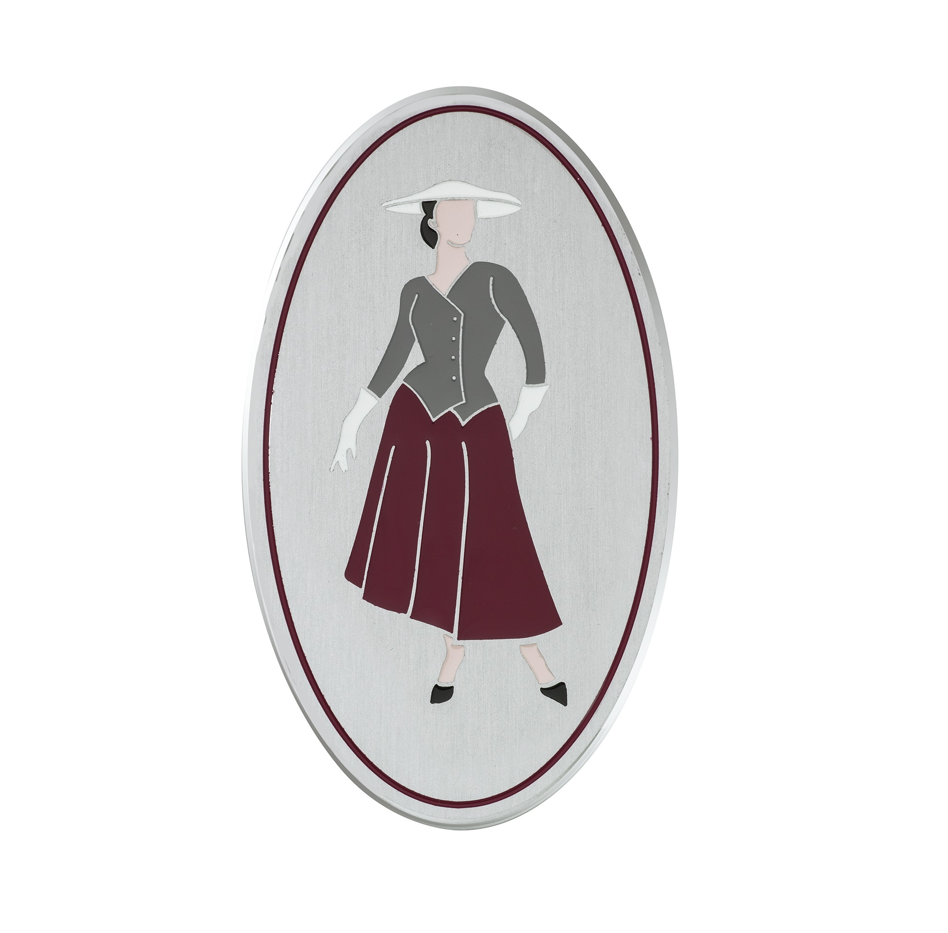 Humphrey's vintage zilverkleurig toiletbordje met een dame. Bordjes zijn geïnspireerd op een jaren '20 design. De bordjes zijn 100% elox aluminium met gepolijste rand, gravering en voorzien van fraai emaillen inkleuring.