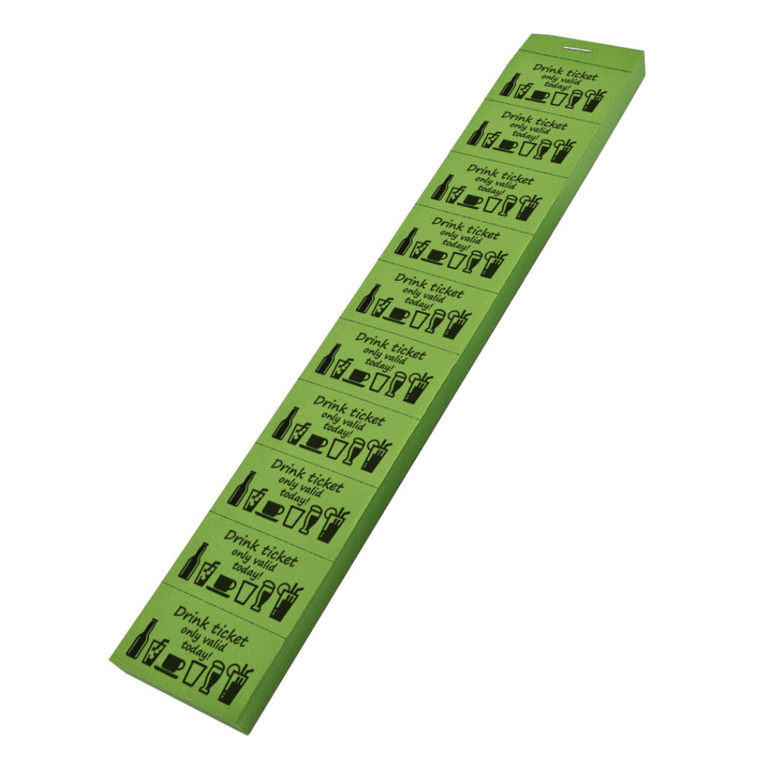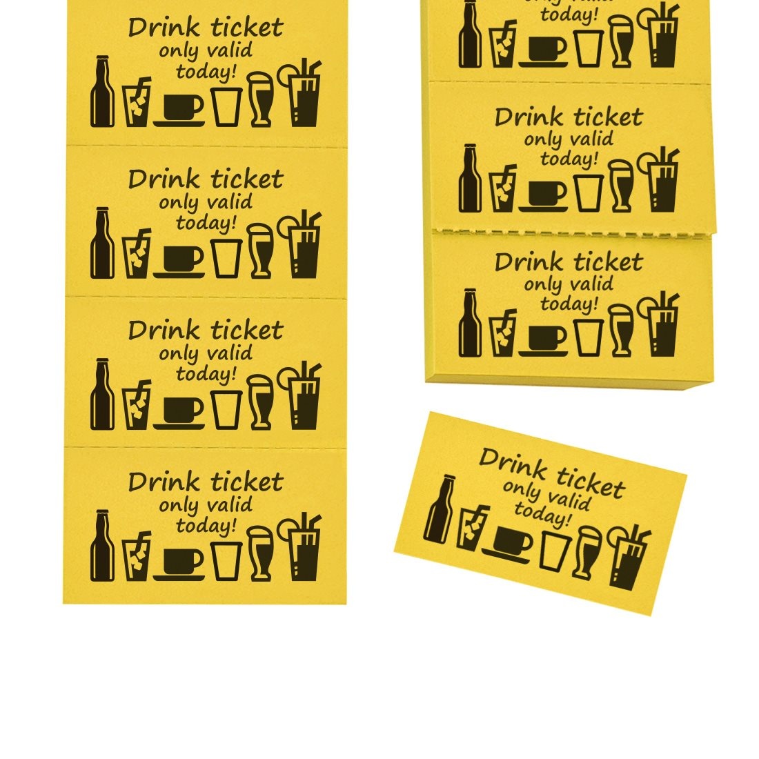 Consumptiebonnen zijn een handig betaalmiddel voor feestjes, borrels of uitjes. Je hebt geen gedoe met losgeld en de kans op telfouten is een stuk kleiner. Deze bon is voorzien van drank iconen en heeft een beperkte geldigheid door de Engelse tekst "Drink ticket only valid today". Je kunt de bon inzetten op dagactiviteiten, zoals een feestje, toernooi of andere speciale gelegenheid.