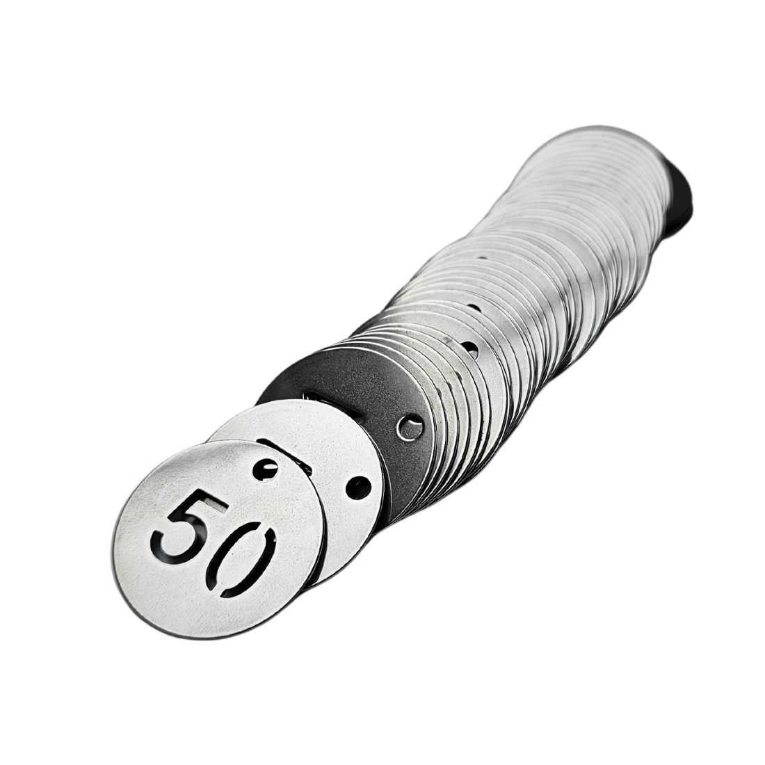 De RVS sleutellabels hebben een diameter van 30 mm en een dikte van 1 mm. Het sterke materiaal is bestand tegen roest en corrosie en blijft lang mooi. Je kunt kiezen uit sets met verschillende nummerreeksen zoals 1 t/m 100, 1 t/m 250, en 1 t/m 500.