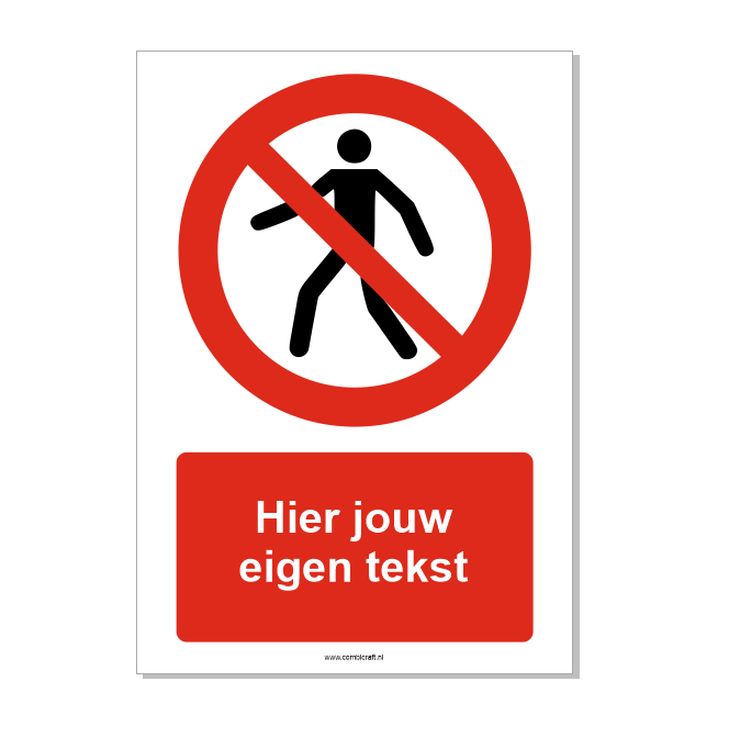 Verboden voor voetgangers bord ISO 7010 P004 met eigen tekst 21x30 cm