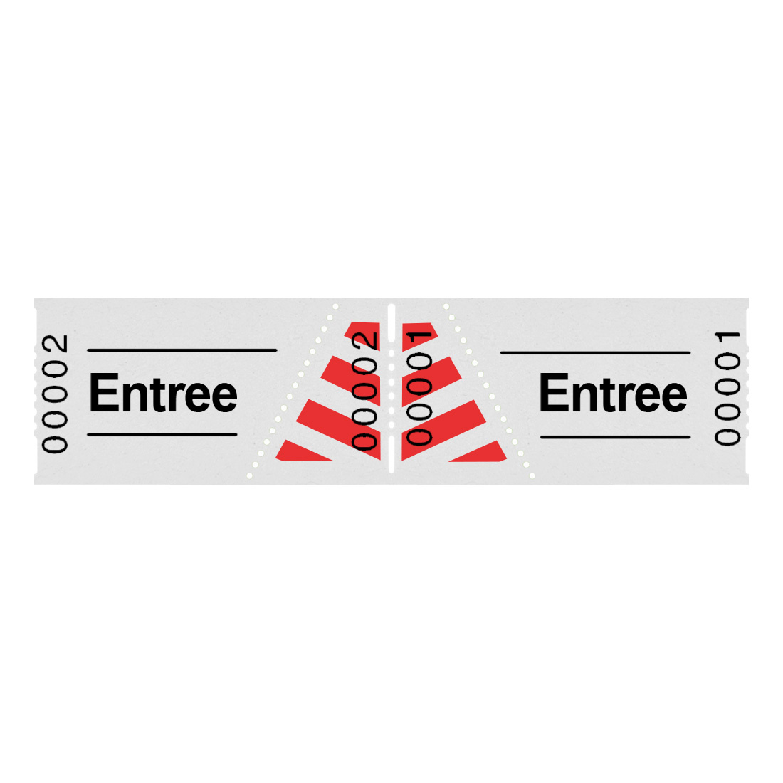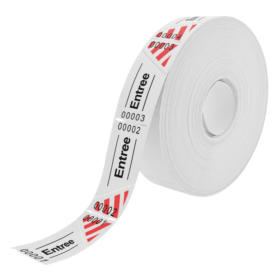 Op een rol entreebewijzen zitten 1000 entree tickets in de maat 57x30mm. De bonnen zijn zo gedrukt dat als je een strook met 10 entreekaartjes zig-zag vouwt, je met 1 beweging alle controle stroken van de entreekaartjes af kunt scheuren. De perforaties van de controle stroken liggen bij het zig-zag vouwen van de entreekaartjes precies op elkaar.