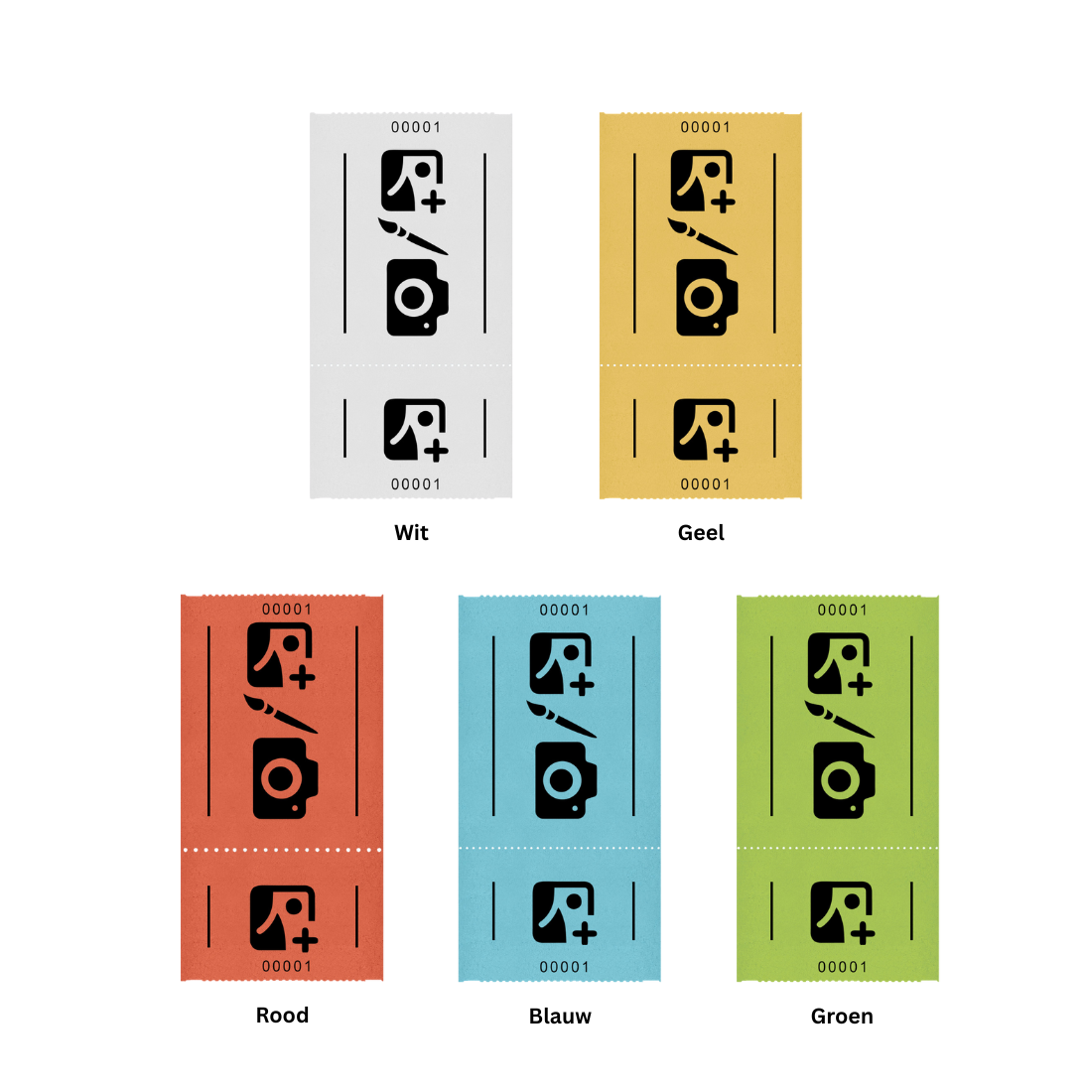 Maak jouw evenement compleet met tickets die passen bij de uitstraling van jouw activiteit. Laat de kaartjes bedrukken met je eigen tekst of logo in zwart. Je kunt ook op het afgiftebewijs je eigen tekst laten drukken. Stuur het ontwerp naar [email protected] onder vermelding van je ordernummer. Je ontvangt eerst artwork ter controle.