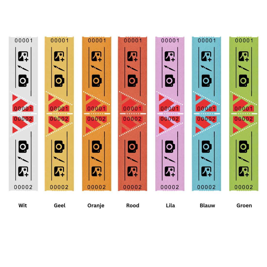 Maak jouw evenement compleet met tickets die passen bij de uitstraling van jouw activiteit. Laat de kaartjes bedrukken met je eigen tekst of logo in zwart. Handig als je bijvoorbeeld onderscheid wilt maken tussen VIP-kaarten of dagtickets. Met je eigen opdruk zien de entreekaarten er professioneel uit en laten ze een blijvende indruk achter. Stuur je ontwerp naar [email protected] onder vermelding van je ordernummer. Je ontvangt eerst artwork ter controle.