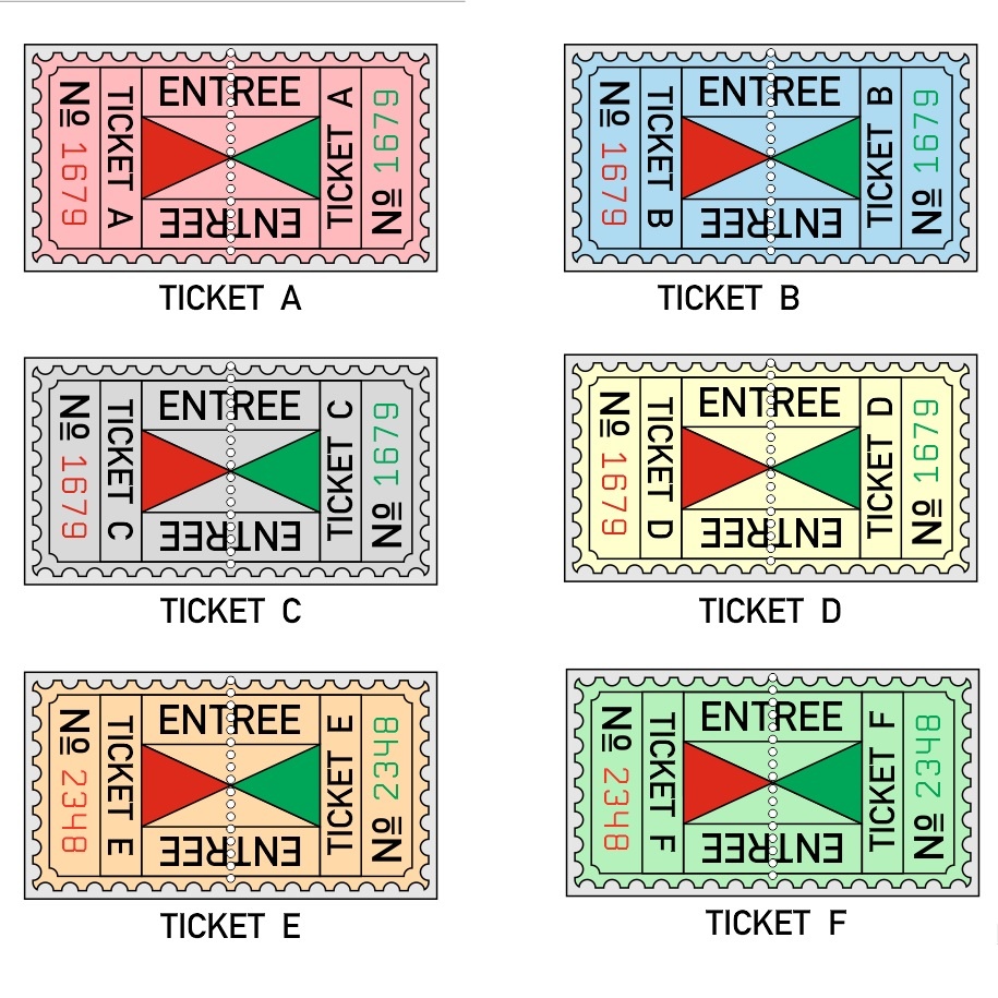 Kleuren op de entreekaartjes en papier van de serie TICKET
