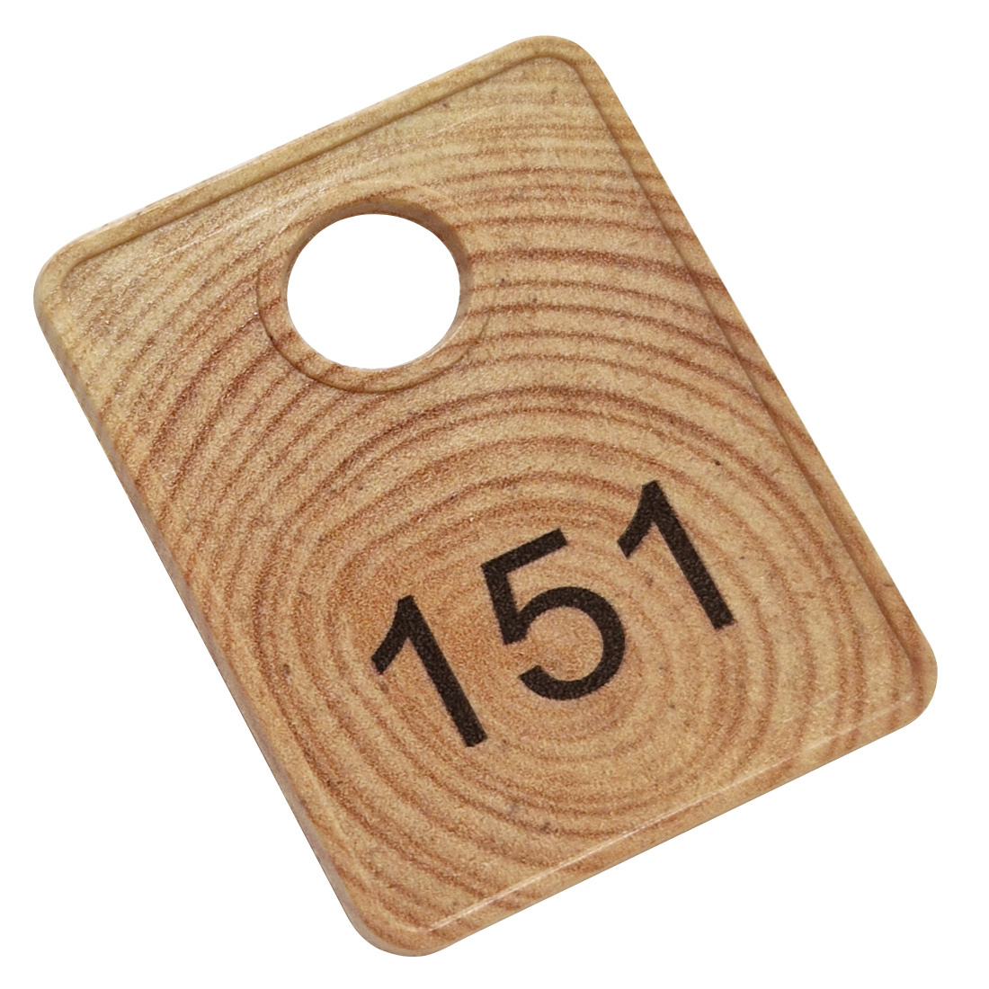 Deze garderobenummers van kunststof hebben een mooi houtmotief. De garderobenummers zijn ca. 36,3 x 50,5 mm en hebben een rond ophanggat. Je kunt deze nummers dus makkelijk aan een kledinghanger of haakje bevestigen. De garderobenummers hebben een nummering van 1 t/m 200.