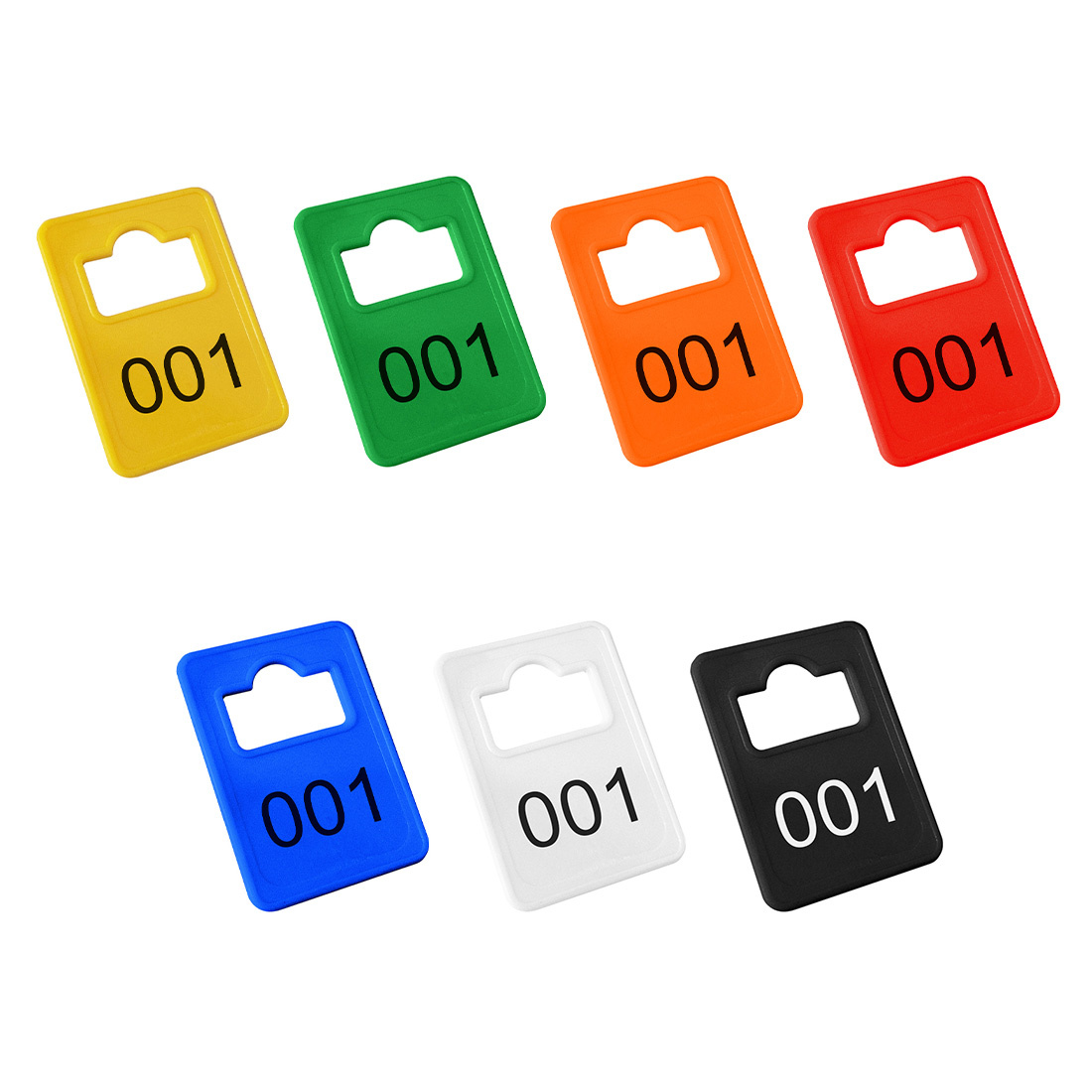 De Tiffany garderobemunten zijn gemaakt van kunststof en hebben een afmeting van 36 x 50 mm. Elke munt heeft een ophanggat van 22 x 15 mm. De garderobemunten zijn verkrijgbaar met een eigen nummering. Geef in het daarvoor bestemde veld de gewenste nummering op. Dit kan een doorlopende reeks zijn, bijvoorbeeld 0001 t/m 9999, maar ook losse nummers, zoals 10, 80 of 2. Heb je een willekeurige of niet-doorlopende reeks? Zet dan alle nummers onder elkaar in een Excel-bestand en mail dit, onder vermelding van je ordernummer, naar [email protected].