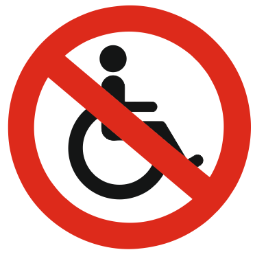 Bordje om aan te geven dat rolstoelen geen gebruik kunnen maken van een voorziening zoals een roltrap. Bordje is gemaakt van een wit gekleurd aluminium plaatje, waarop het geen-rolstoel print is gedrukt. Aan de achterzijde is tape aangebracht. Bordje kan zowel binnen als buiten gebruikt worden.
