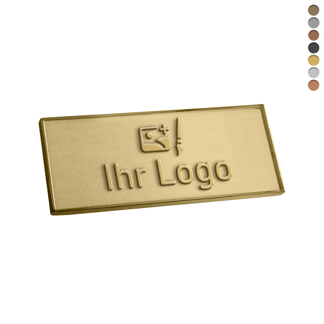 Het rechthoekige gegoten logo plaatje is gemaakt van gietmetaal, een legering van brons en ijzer. Het heeft een afmeting van 50 x 20 mm en een dikte van 2 mm. Je kunt kiezen uit verschillende metaal- en hoekafwerkingen, die je eenvoudig bij het product selecteert. Het wordt standaard zonder bevestiging geleverd, maar tegen een meerprijs voorzien van tape aan de achterzijde voor snelle en gemakkelijke montage. De gegoten logo plaatjes zijn geschikt voor zowel binnen- als buitengebruik en verkrijgbaar per stuk, vanaf 100 stuks.
