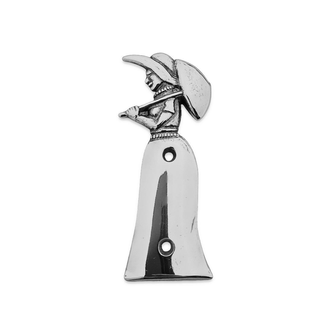 Klassiek gegoten toiletbordje van kwalitatief messing. Het bordje heeft het authentieke design van een dame met paraplu. Deze bordjes vinden nog steeds veel aftrek en zijn weer terug van weggeweest. Afmetingen van 35 x 95 mm. Het toiletbordje heeft twee bevestigingsgaten en wordt geleverd met 2 losse schroefjes. Verkrijgbaar in goudkleurig messing en vernikkeld zilverkleurig messing. Per stuk.