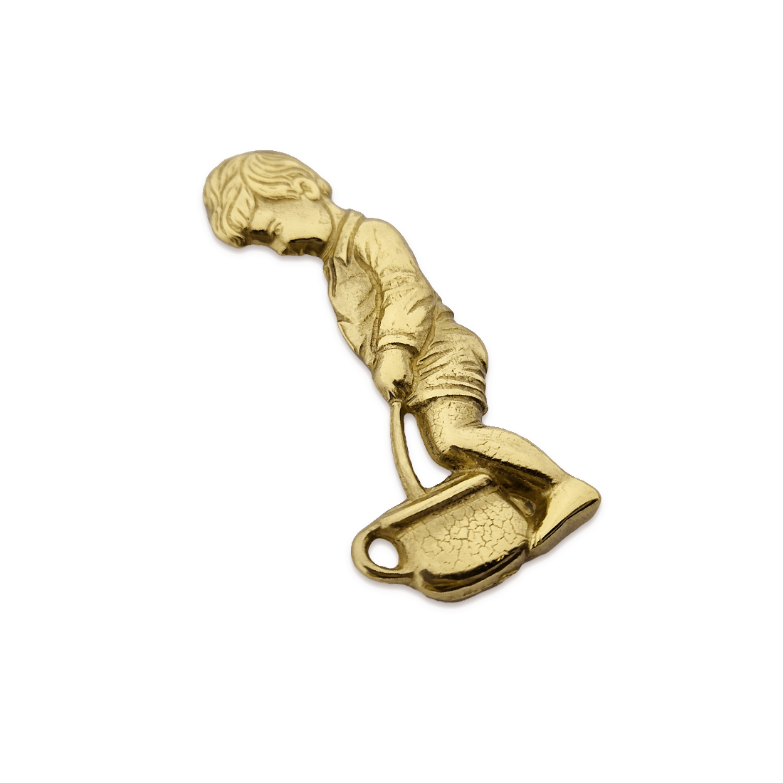 Gegoten toiletbordje "Plassend jongetje" in goudkleurig messing of zilverkleurig messing