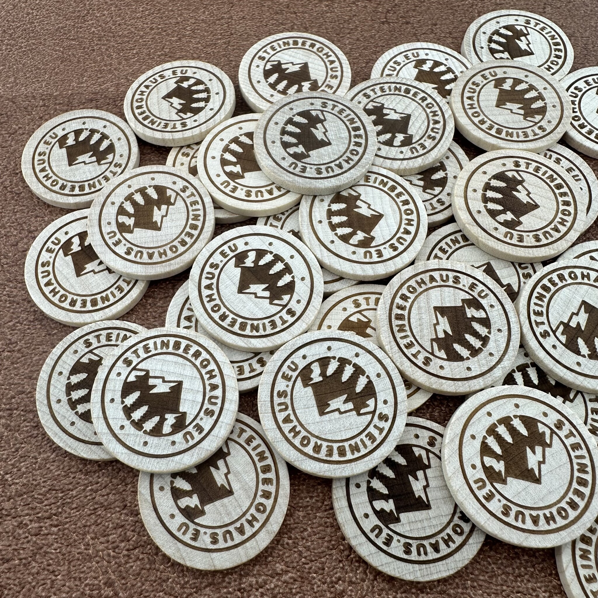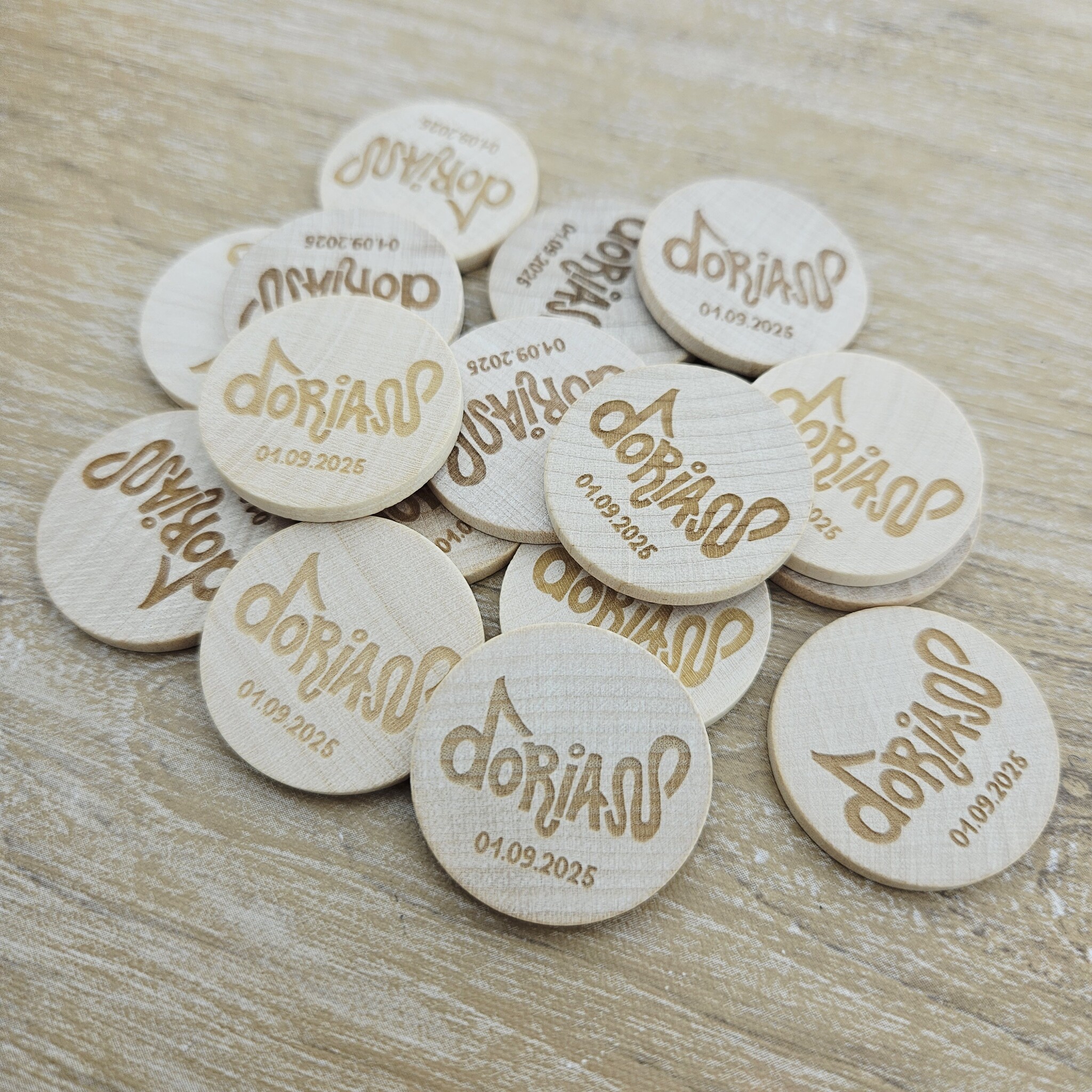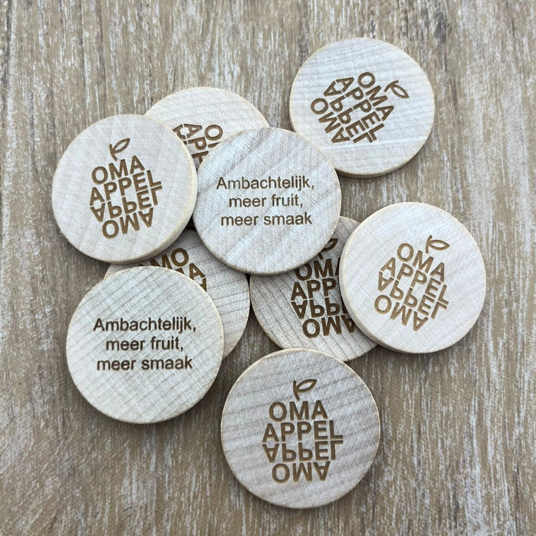 Houten munten met eigen gravering Ø29mm - per 100 stuks